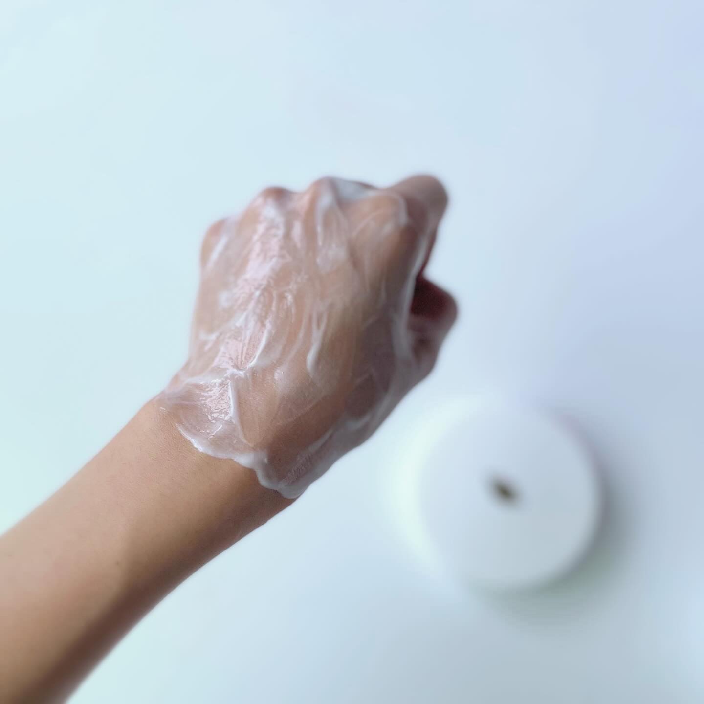 クリームタイプのボディウォッシュ😳! ピンポン玉大を手に取ってそのまま肌に伸ばして洗います👏 ボディクリームがいらないくらいもっちり潤いの洗い上がり🥰! スクラブと混ぜて使ったり泡立てて使うのもおすすめ🙌