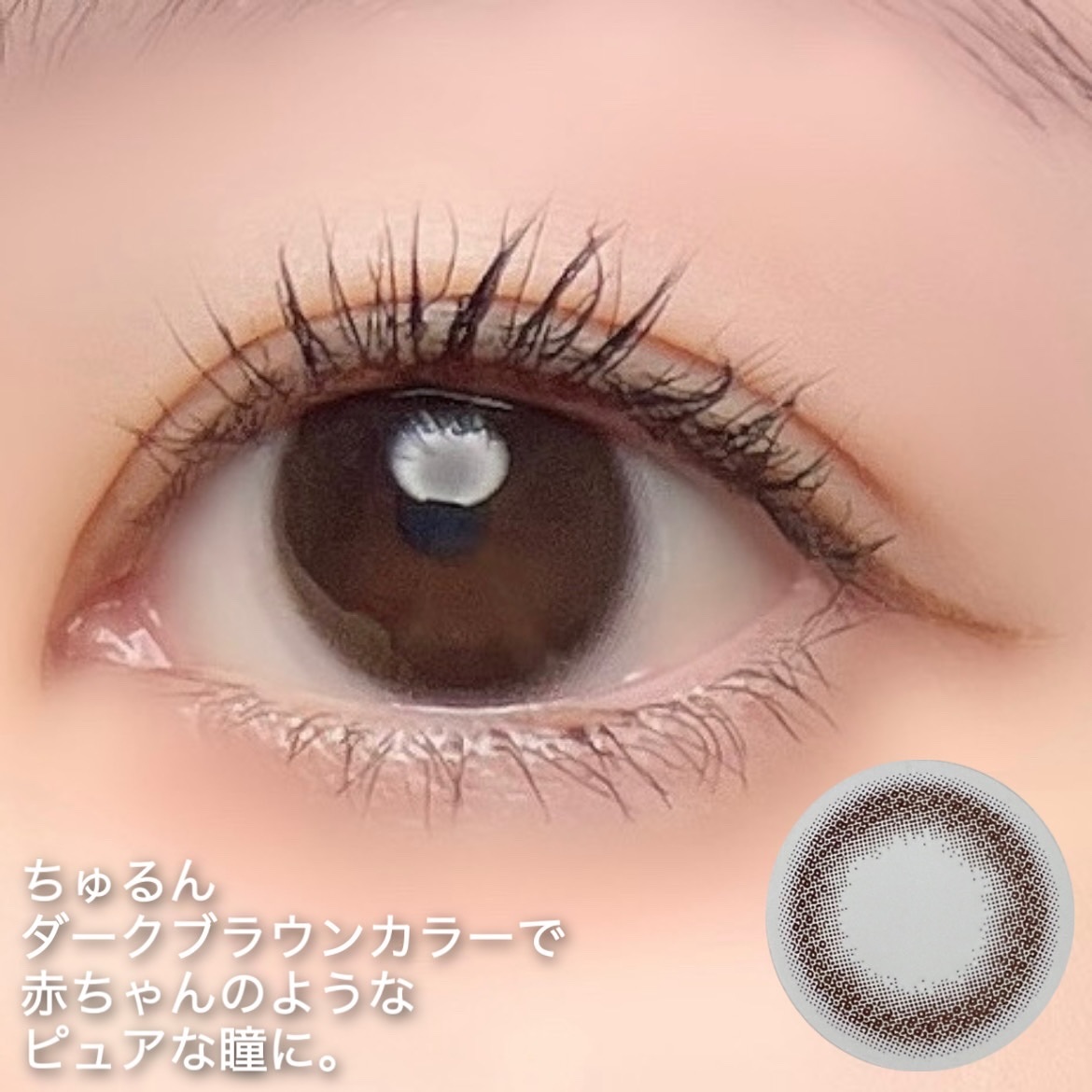 学校やオフィスにも使いやすい ちゅるんダークブラウンカラコン❤︎ かなり裸眼のようでかなりあざとく盛れる ダークブラウンだと思います...!🥺 ナチュラルであざと可愛い、ちょっぴり黒目がちな瞳になりたい方におすすめな裸眼風デイリーレンズです❤︎