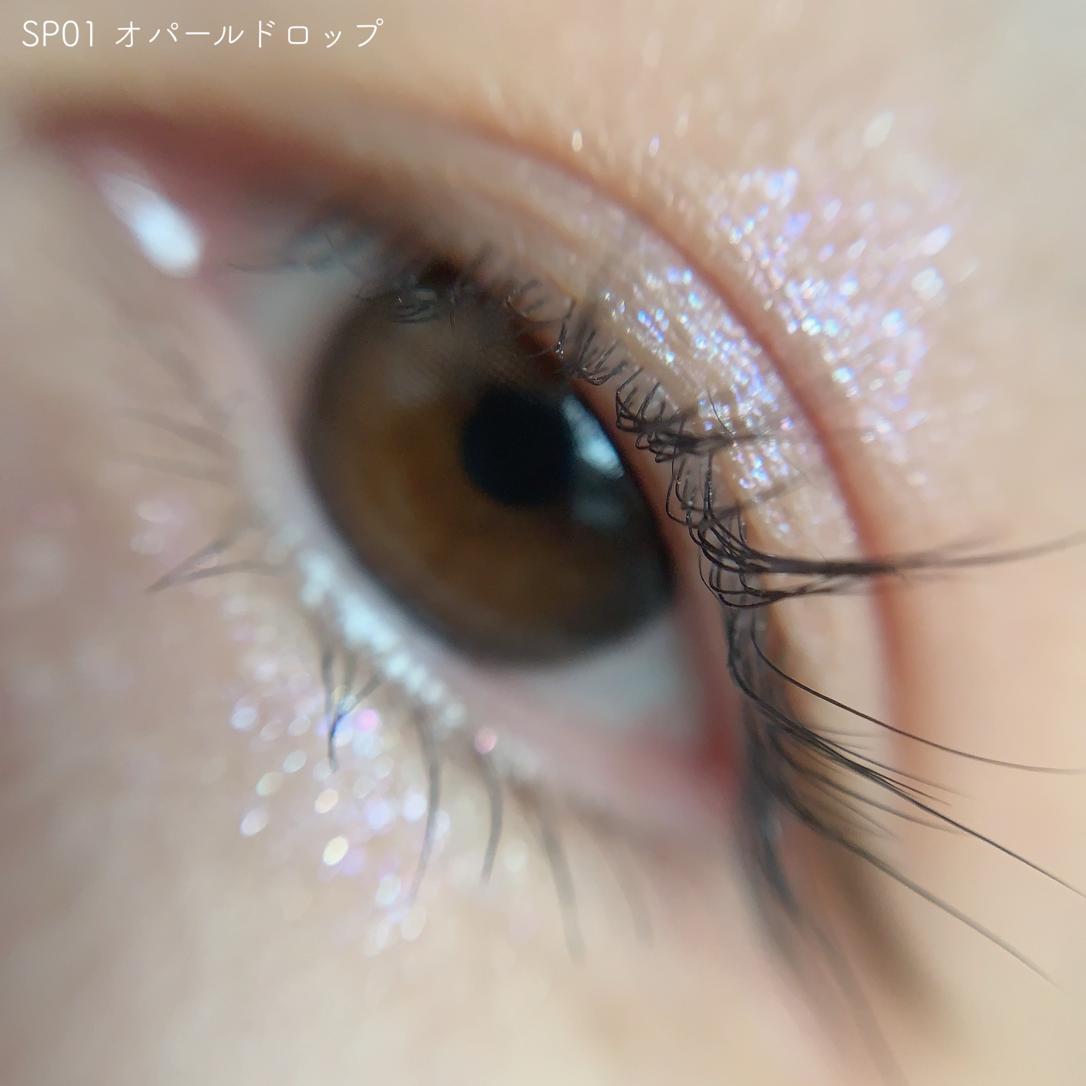 高密着うるみラメ×高彩度ラメシャドウ🥹✨CEZANNEのシングルシャイニーアイシャドウ3色をスウォッチ🌸CEZANNEセザンヌシングルシャイニーアイシャドウ01ムーンジェム/02サクラプリズム/SP1オパールドロップメイクはSP1のオパールド...