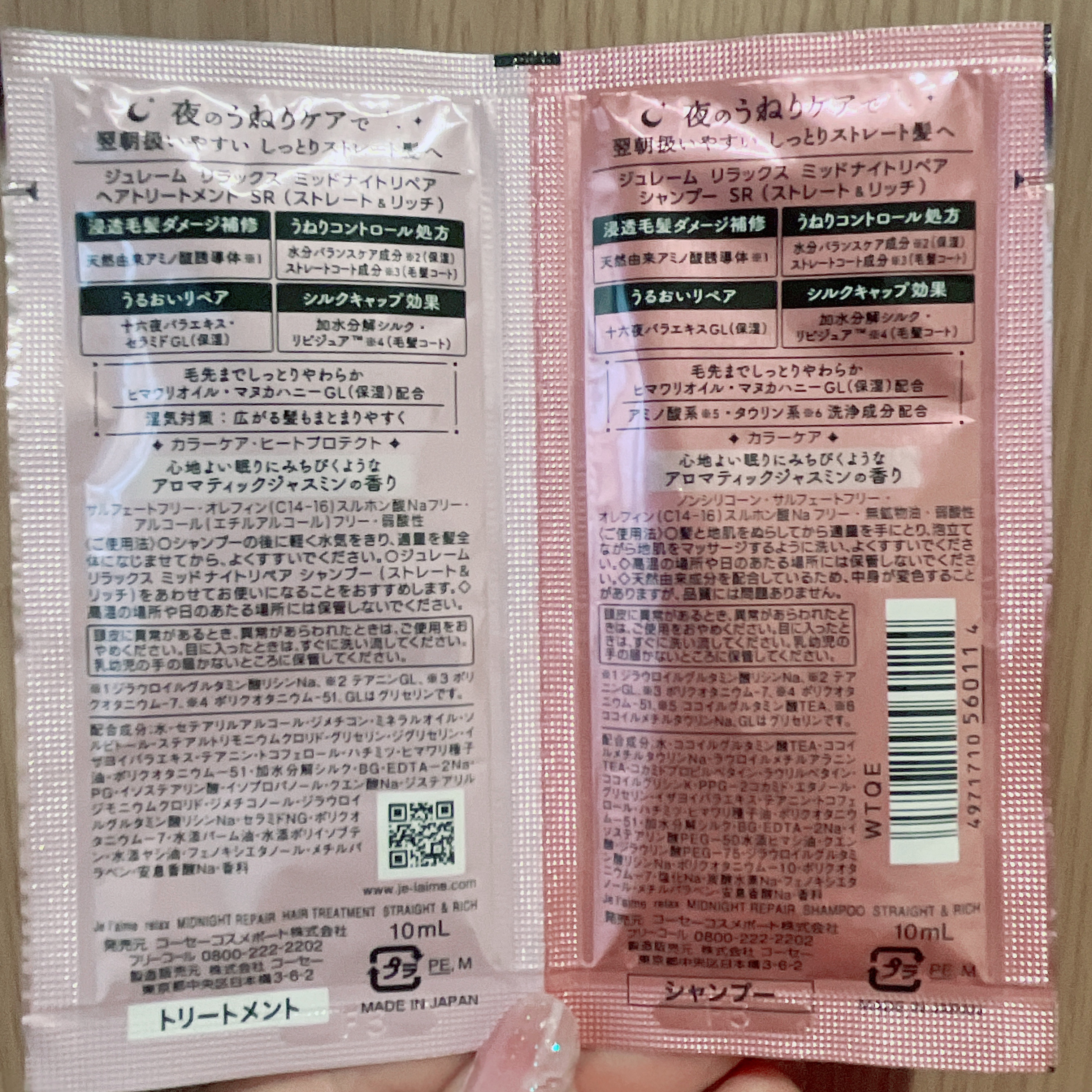 Je l'aime リラックス ミッドナイトリペア シャンプー/ヘアトリートメント (ストレート&リッチ) | 968円 |