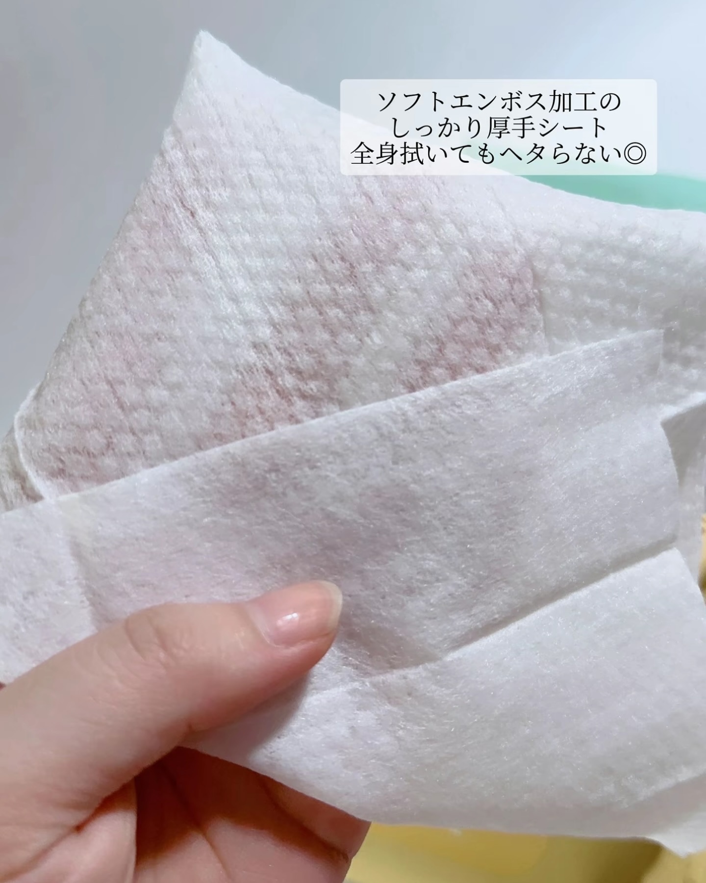 | ボディシートランキング第109位 | やや厚みのある肌当たり柔らかめのシート◎はじめ水分ありでさっぱり感あるのに、パウダー付でサラッと仕上げ💮 | 詳細を見る |