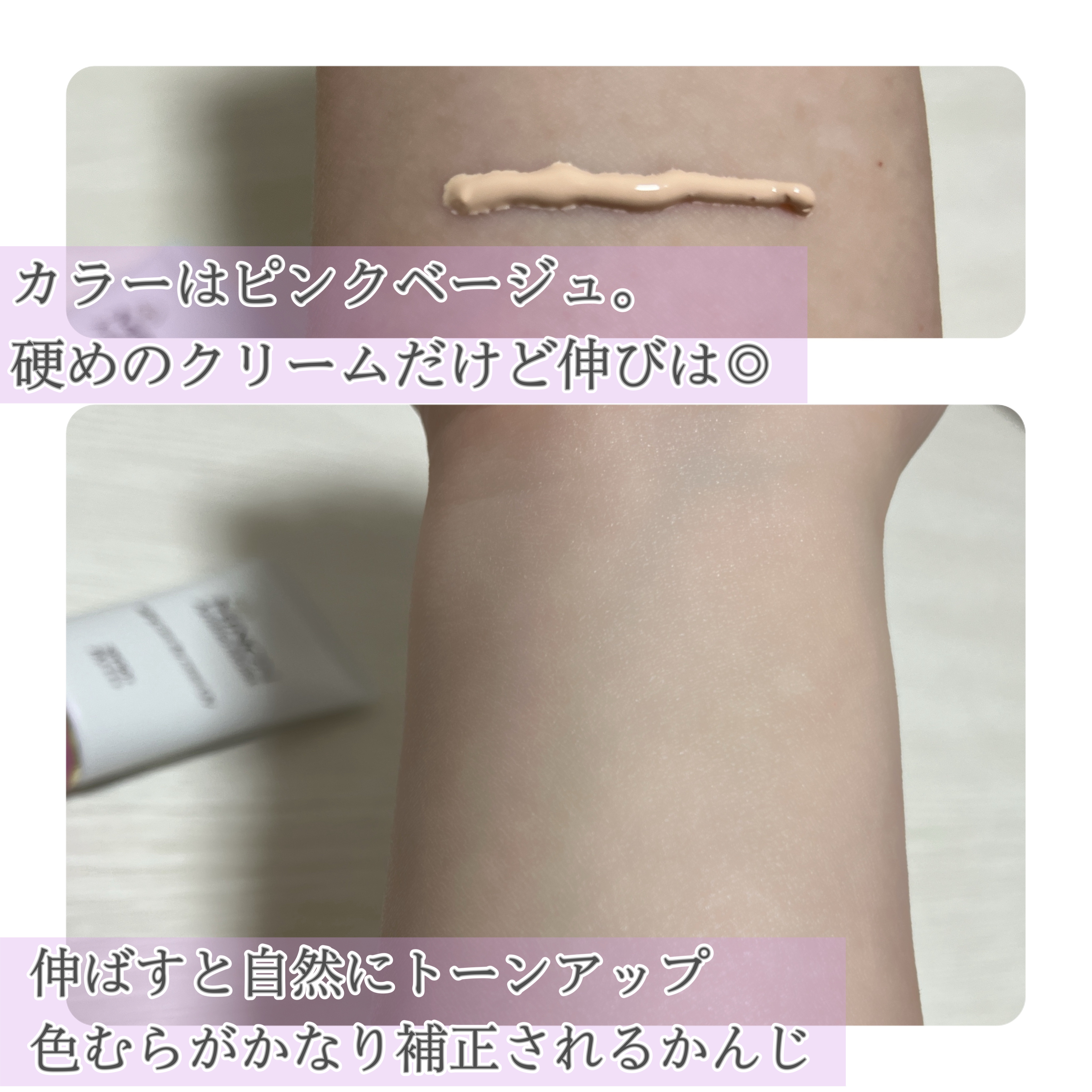 プッシュタイプの日焼け止めで、一見白っぽいクリームに見えますが伸ばすと透明に変わって白残りしないのが○。 かなりみずみずしいテクスチャなので乾燥したりぱさついたりしないのも良いです。 パッケージがとてもかわいいし刺激や皮膜感も薄いのでこの季節のプレゼントなどに喜ばれるかもしれません。 ただ甘いお花の香りがするので、外出先で塗り直し…とかには向いていないかもしれません。 特にアウトドアだと匂いにさそわれた虫が来てしまいそう…! 個人的には非常に好きな香りなので日焼け止めをつけるのが楽しくなりました。