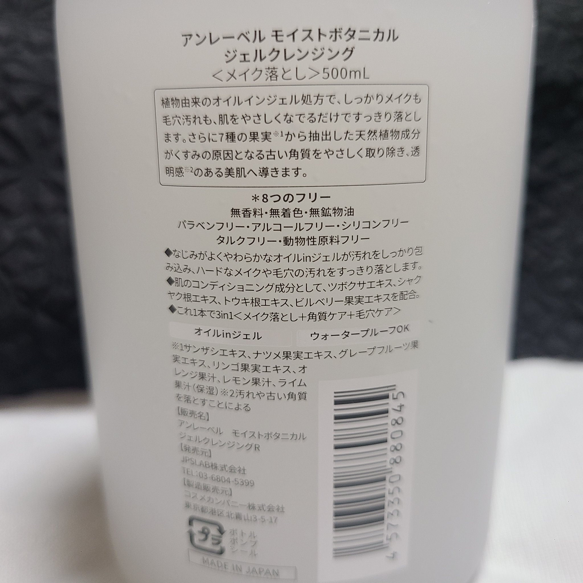 商品詳細情報unlabel モイストボタニカルジェルクレンジング