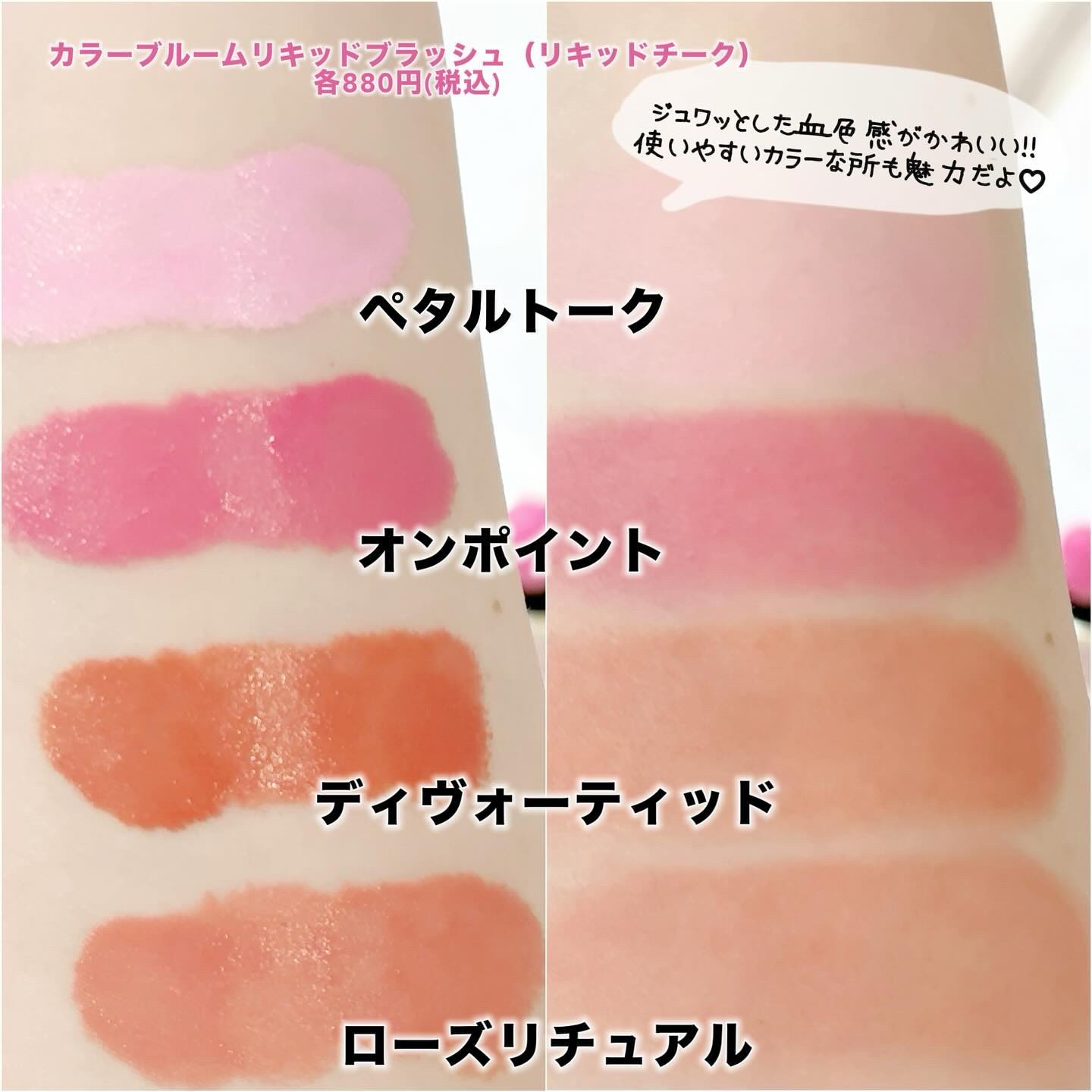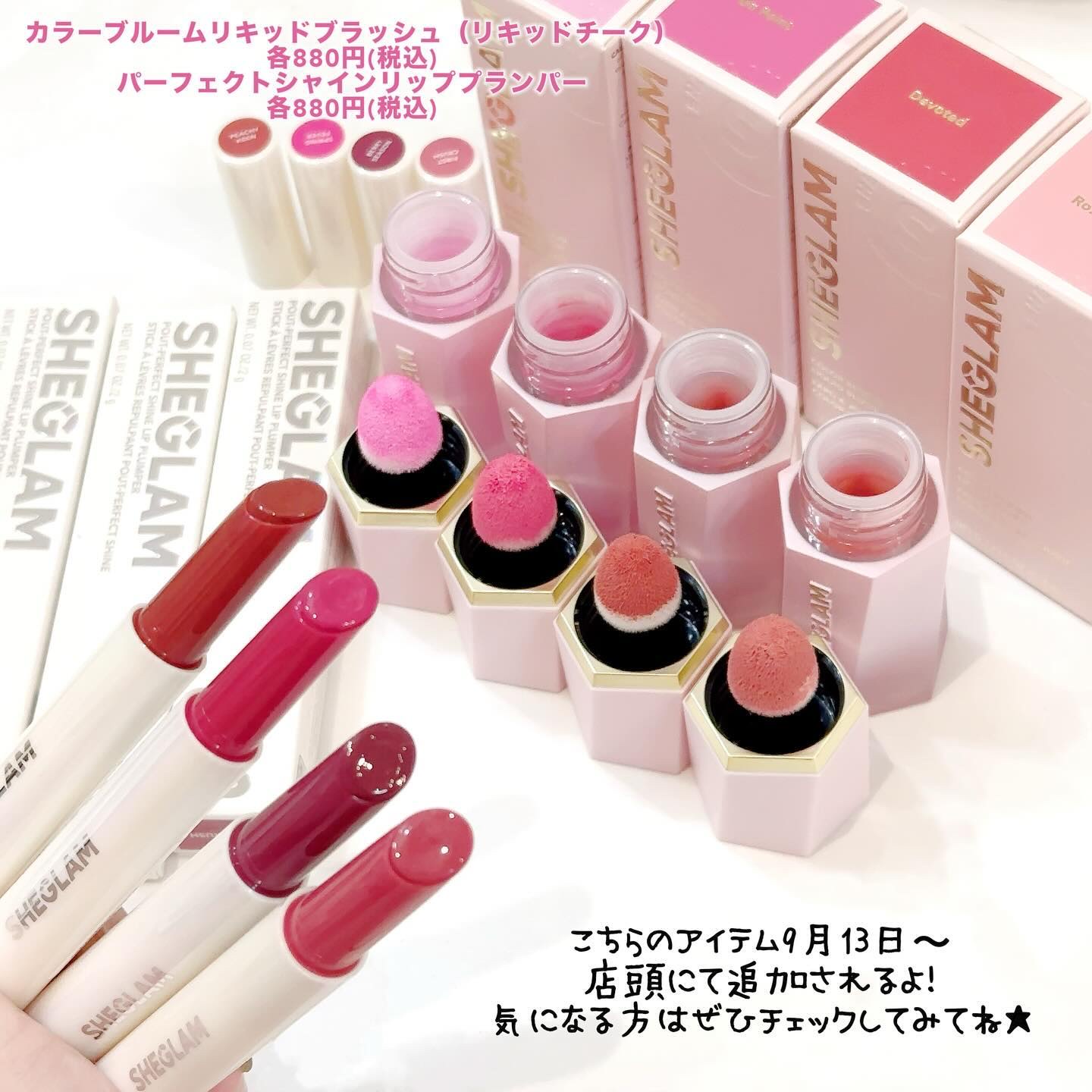 じゅわっと内側からにじみ出るような血色感を演出するリキッドチーク。お肌に密着してリキッドならではのうるおい感をキープしてくれます🤍 ぷるんっじゅわ~な仕上がりが超可愛いリップ💄 色つきリップのような使用感ですがビックリするくらい色持ちが良く、これ1本でプランパーもリップカラーもグロスも完成するのでお気に入りです😭💖 どちらも9/13から店頭発売🛒𓈒𓂂𓏸 このコスパの良さは要チェックです👀💘