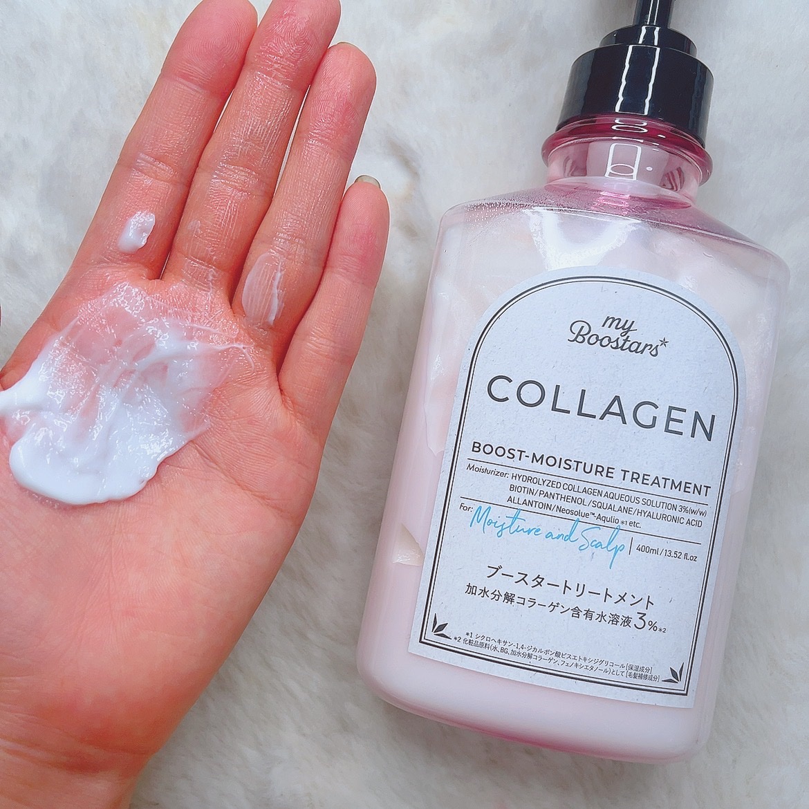 加水分解コラーゲン配合、スキンケア発想から生まれたブースターシャンプーとトリートメント シャンプーはとろみのあるテクスチャで少量でもこもこ泡立ちが良い✨ ブースターミストは美容オイル層と美容液層の2層式でこれだけでとぅるんと潤うから今使っているシャンプーに足すだけでもおすすめ!