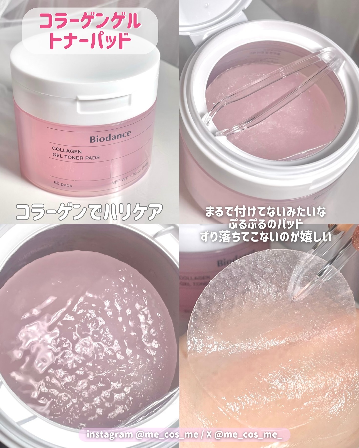 100%リアルゲルパッド。コラーゲン水100,000ppm含有で潤いケア 潤い満タン肌になるような感じ。でもべたつかないので朝にも使いやすいです♪ 特にコラーゲンゲルトナーパッドはゲルが得意なバイオダンスさんならではな感じで,ぜひ体験してほしいです❣️