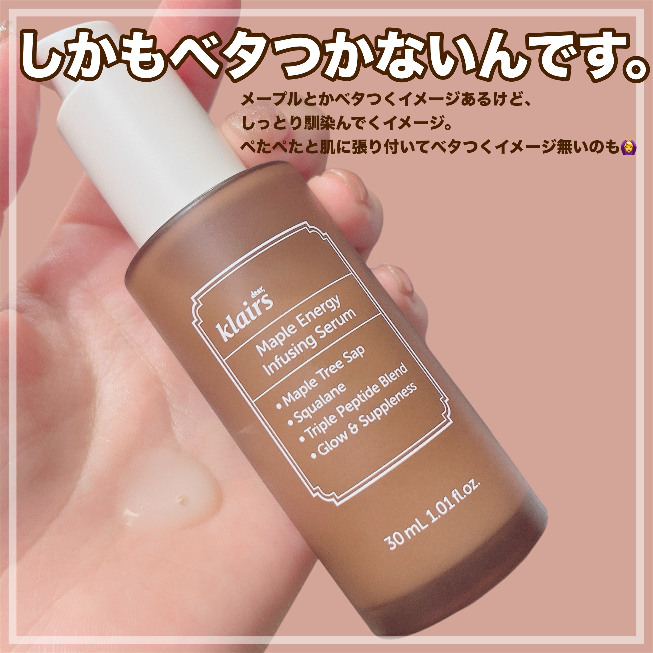 メープル液を濃縮して作った栄養豊富なセラム ×スクワラン×ペプチド 毛穴・弾力ケアに効果的 おでこ、目元、ほうれい線などの小ジワ改善の人体適用試験完了👍🏻 とろーんとのびるシロップテクスチャー ハリ艶がでてもっちり肌になるよ🧡🧡🧡
