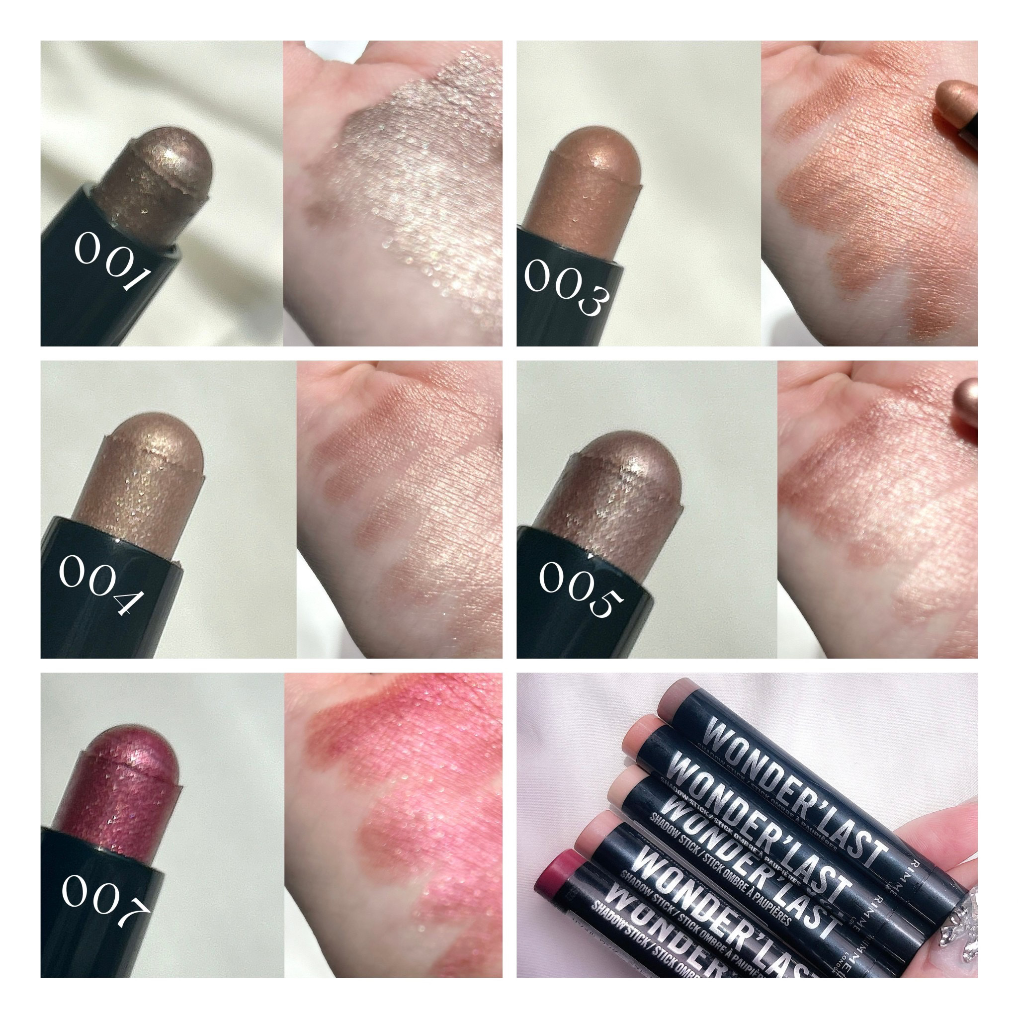 1本でベースにも涙袋にも使える! RIMMEL新作のスティックアイシャドウとなっています。 ひと塗りで、高発色×パール感のキラめく目もとが瞬時につくれてしまうアイシャドウスティック! スラスラ、ノンストレスで描けるのがGOOD! パール感は細かく、目元が煌めきながらも主張が強過ぎないのも良い。