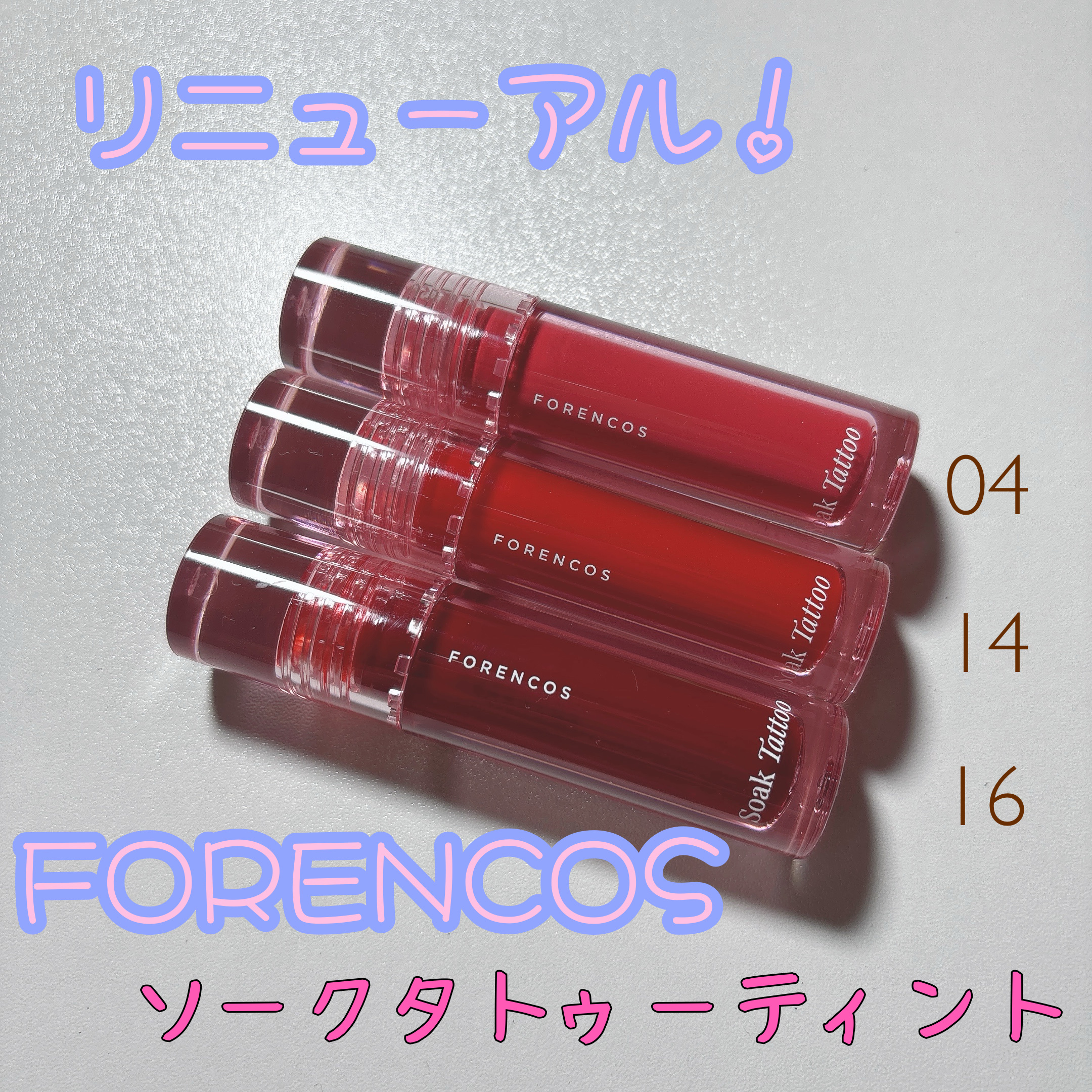 FORENCOSの大人気ティントがリニューアル♡ 落ちにくくて泣いた飲み会リップ! なんと全15色という豊富なカラバリ! 01 Elodie 春ときめきに満ちたソフトコーラルカラー めちゃくちゃ落ちにくくて飲み会リップにもぴったり! しっかりティントしてくれるからグラデーションもつくりやすいです!