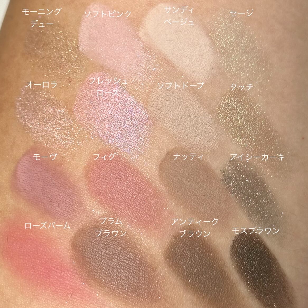 マットからグリッターまでさまざまなテクスチャーが詰め込まれたアイパレット。 ピンク、グリーン、ブラウンと多彩な色味でアイメイクだけでなく、チーク、アイブロウまでこれ1つで完成する万能パレット🎨 色んな組み合わせをするのが楽しくてメイクの幅が一気に広がります🥺 グリーンメイクって苦手意識持っていたけど、こちらは使いやすいカラーでした🫶 捨て色なしの万能パレットでおすすめ🪄
