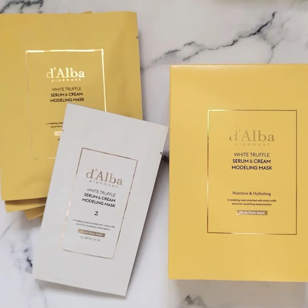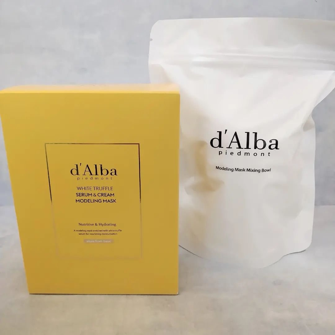 ♡d'AlbaWHITETRUFFLESERUM&CREAMMODELINGMASK。oOo。.:♥:.。oOo。.:♥:.。oOo。.:♥夏の氷河スキンブーストセットのものです✨️このタイプのマスク初めて使いました😂画像2枚目に作り方乗せて...