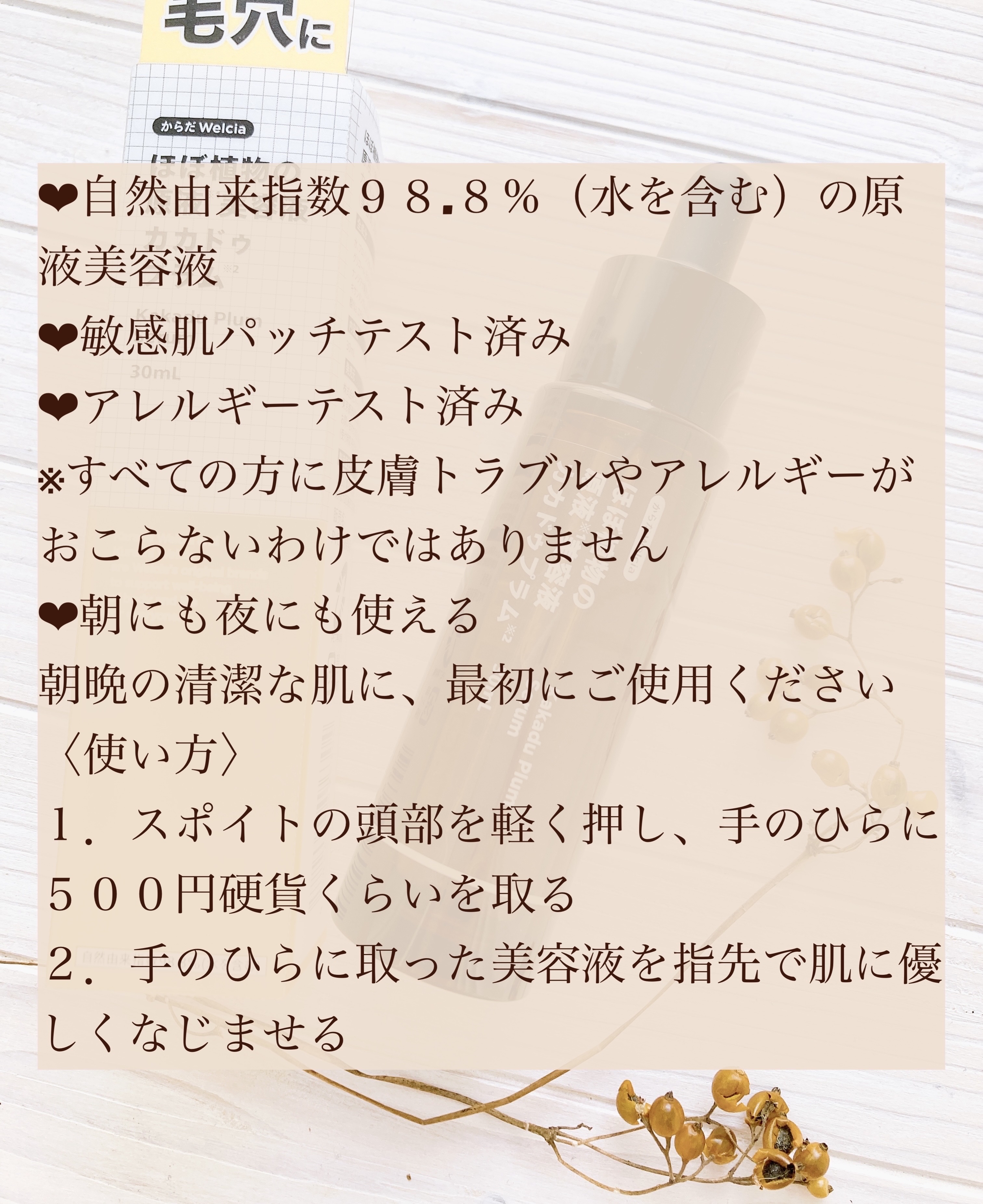 商品詳細情報からだWelcia・くらしWelcia ほぼ植物の原液美容液カカドゥプラム