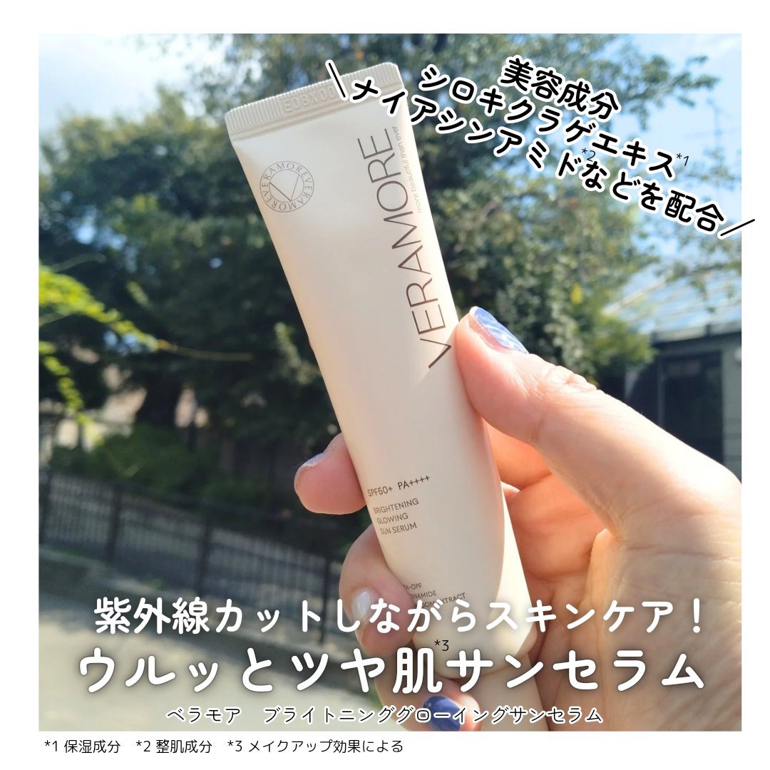 #PR使い切りました。好き🩷な使用感❣️VERAMOREベラモアブライトニング光彩サンセラム 50ml🌟Qoo10サンプルマーケットで初めて当たりました🎀うるツヤサンセラムVERAMORE→初期エイジングケアの新しい基準を定着するプレミアムス...