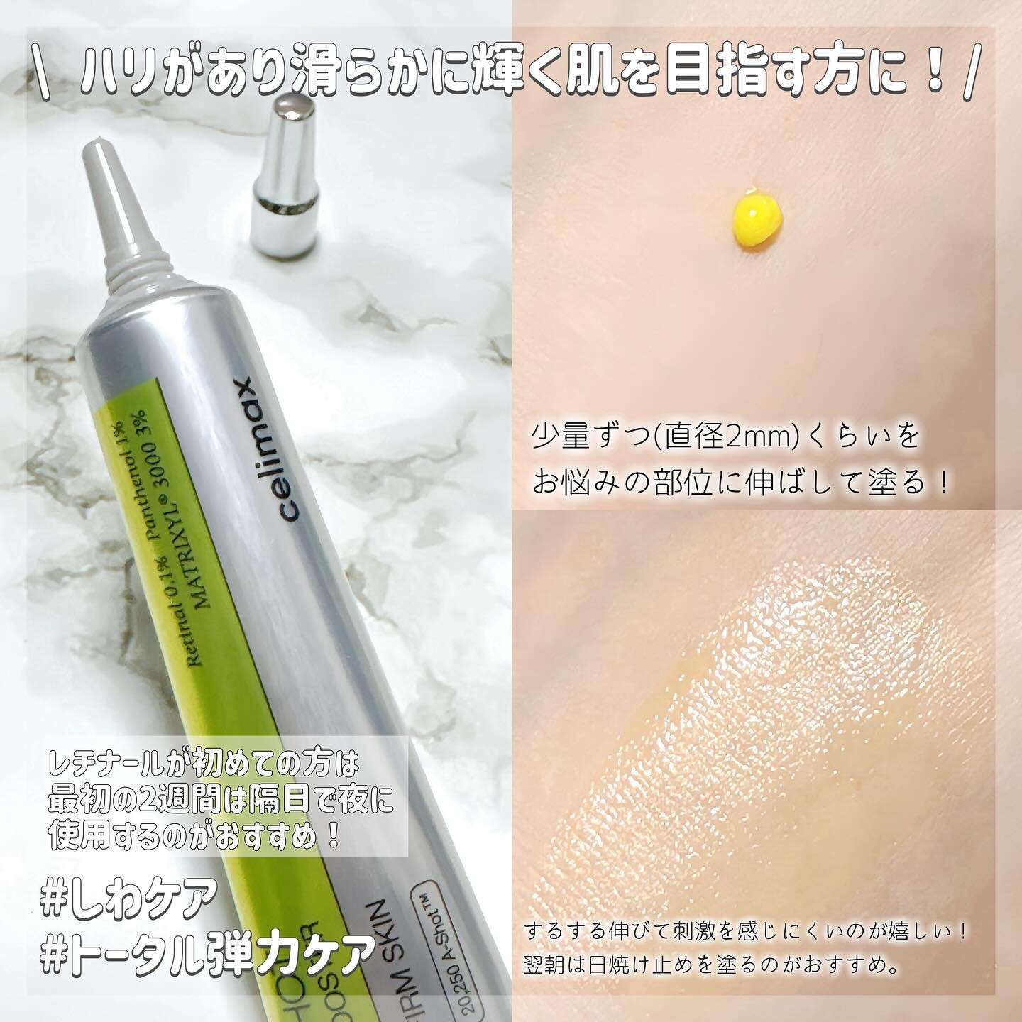 Celimaxレチナールショットタイトニングブースター話題の次世代ビタミンA✨レチノールより一段階進んだ「レチナール」0.1%配合😍✔︎毛穴より小さいサイズで、角質層まで素早くアプローチ✔︎夜のケアに取り入れたい集中ケアアイテム🌙✔︎ハリ不足...