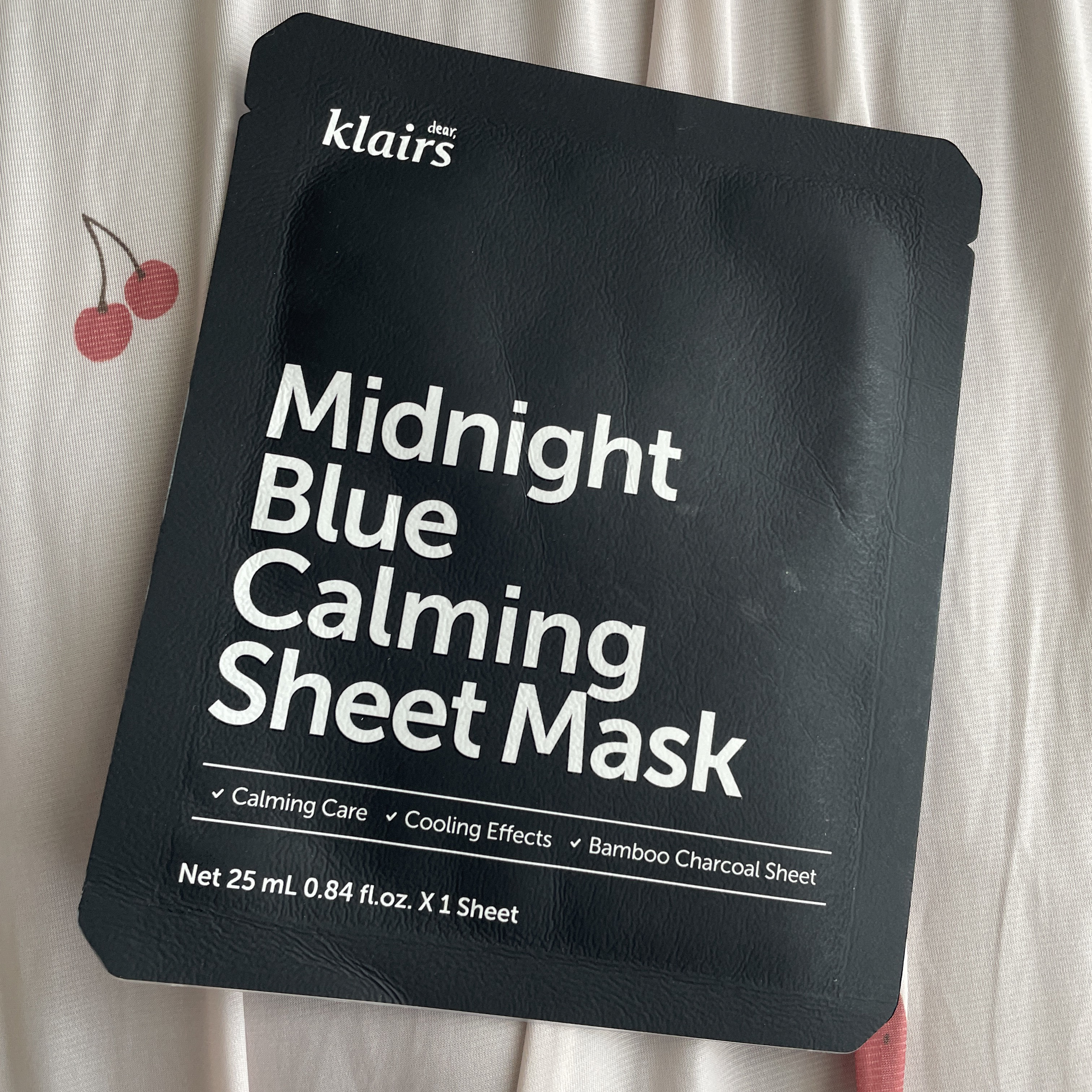 Klairsミッドナイトブルーカーミングシートマスク特徴的な黒色のマスク(竹炭が含まれた生地)で、肌をうるおしてくれます。また顔の上下でセパレートされているタイプなので、微調整できるのが良かった点でした!保湿感としては高すぎるという感じではな...