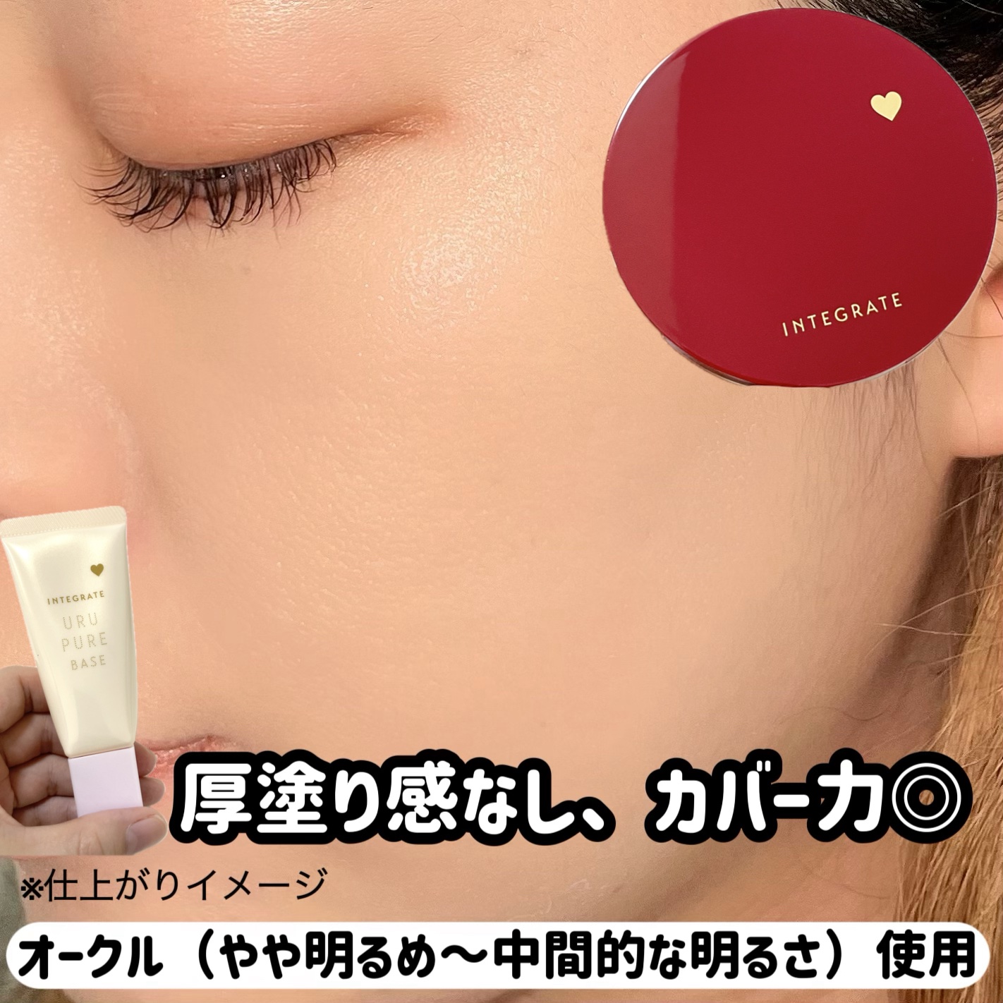 瞬間カバーするのに厚塗り感ナシ! うるんだつや肌、1日中続くクッションファンデーション カバー力高め! サッと塗るだけで薄いシミや毛穴はちゃんとカバーしてくれるし崩れにくかった! インテグレートならではの赤パケ インテグレートっていえば赤だよね!綺麗な赤のパケ❤️