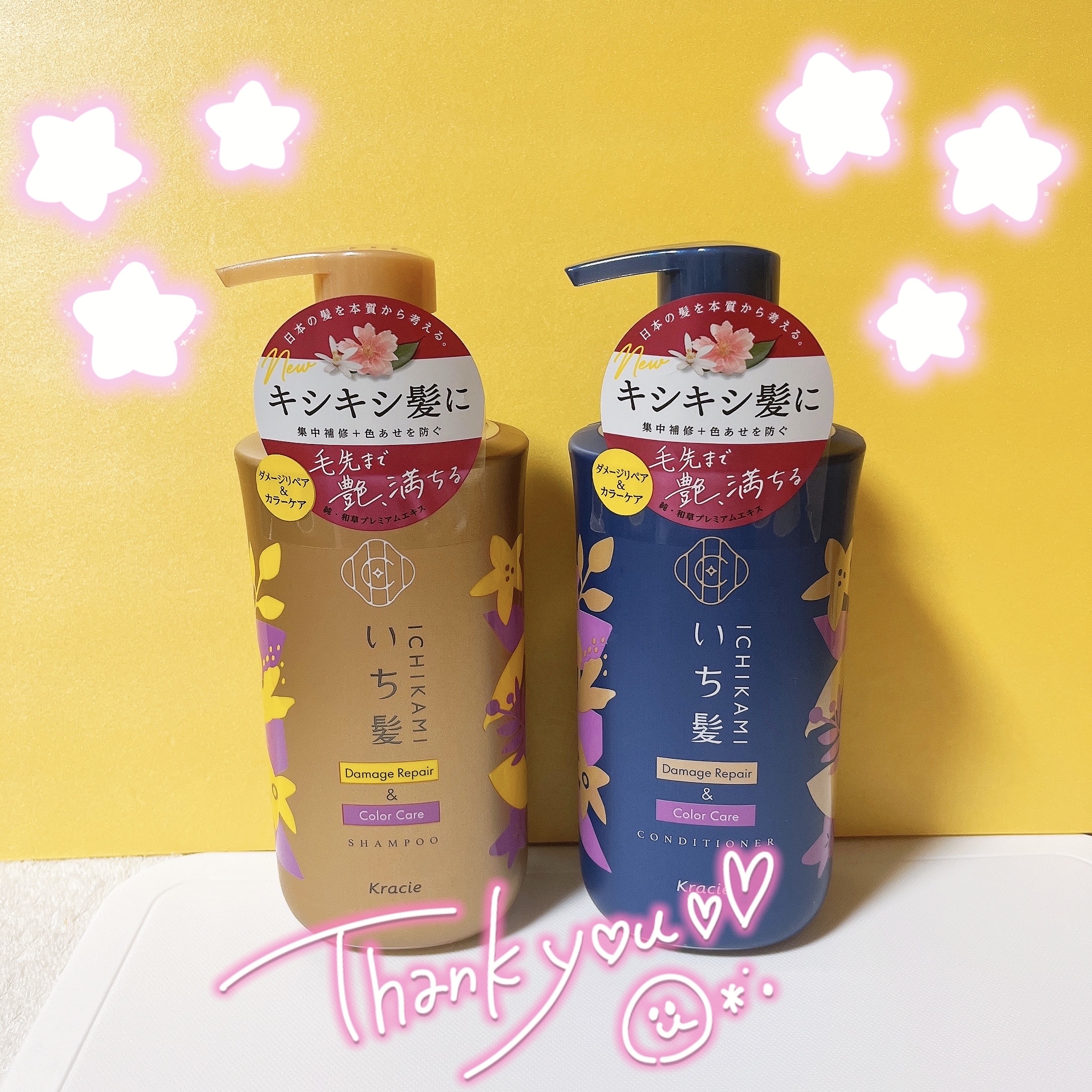 いち髪ダメージリペア&カラーケアラインシャンプー・コンディショナーをいただきました。 もっちりとした泡立ちで摩擦少なく、すっきりと洗い上げ◎ シャンプーだけでリンスをした後かのような、指通りなめらかな手触りになり驚きました❣️