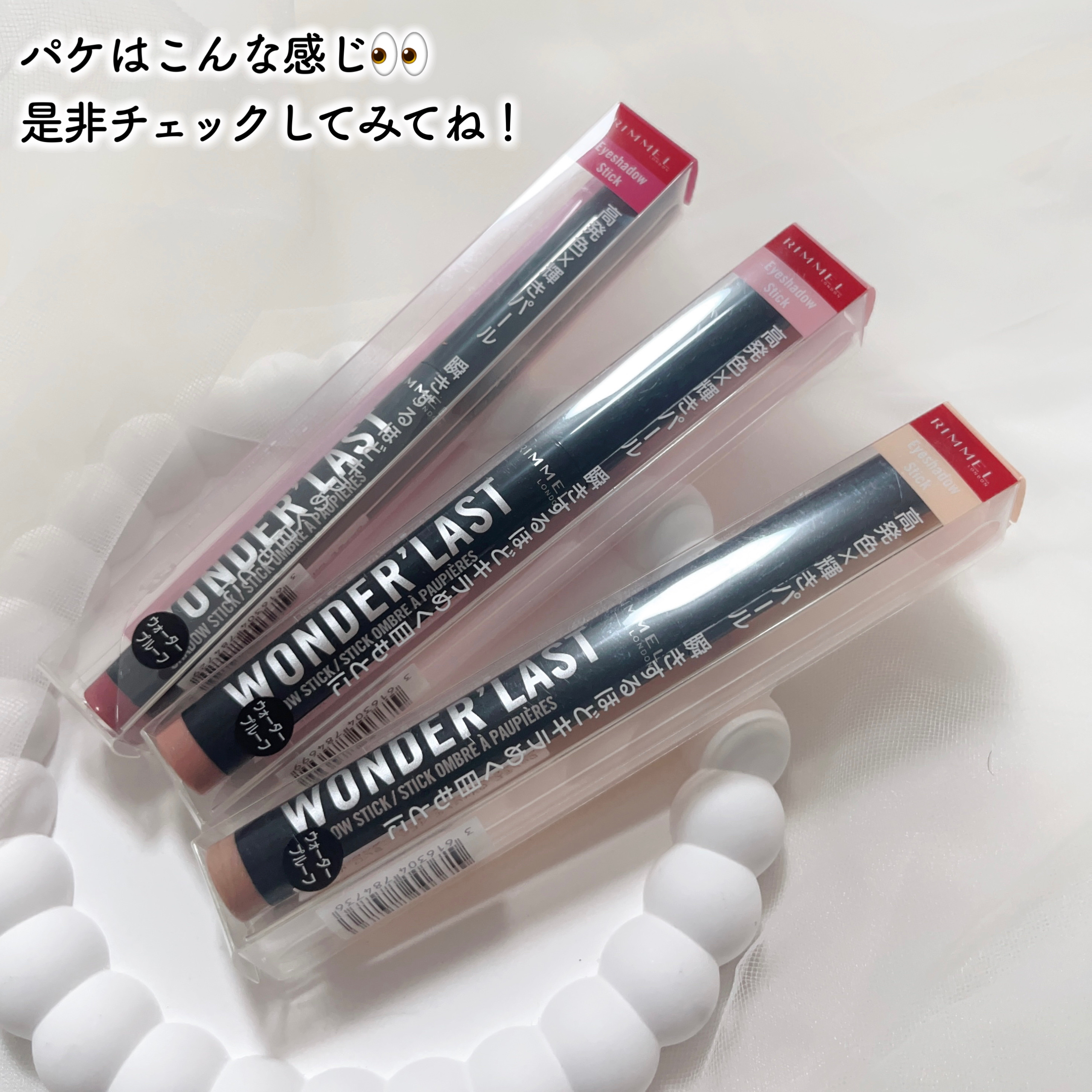 1本でベースにも涙袋にも使える! RIMMEL新作のスティックアイシャドウとなっています。 ひと塗りで、高発色×パール感のキラめく目もとが瞬時につくれてしまうアイシャドウスティック! スラスラ、ノンストレスで描けるのがGOOD! パール感は細かく、目元が煌めきながらも主張が強過ぎないのも良い。