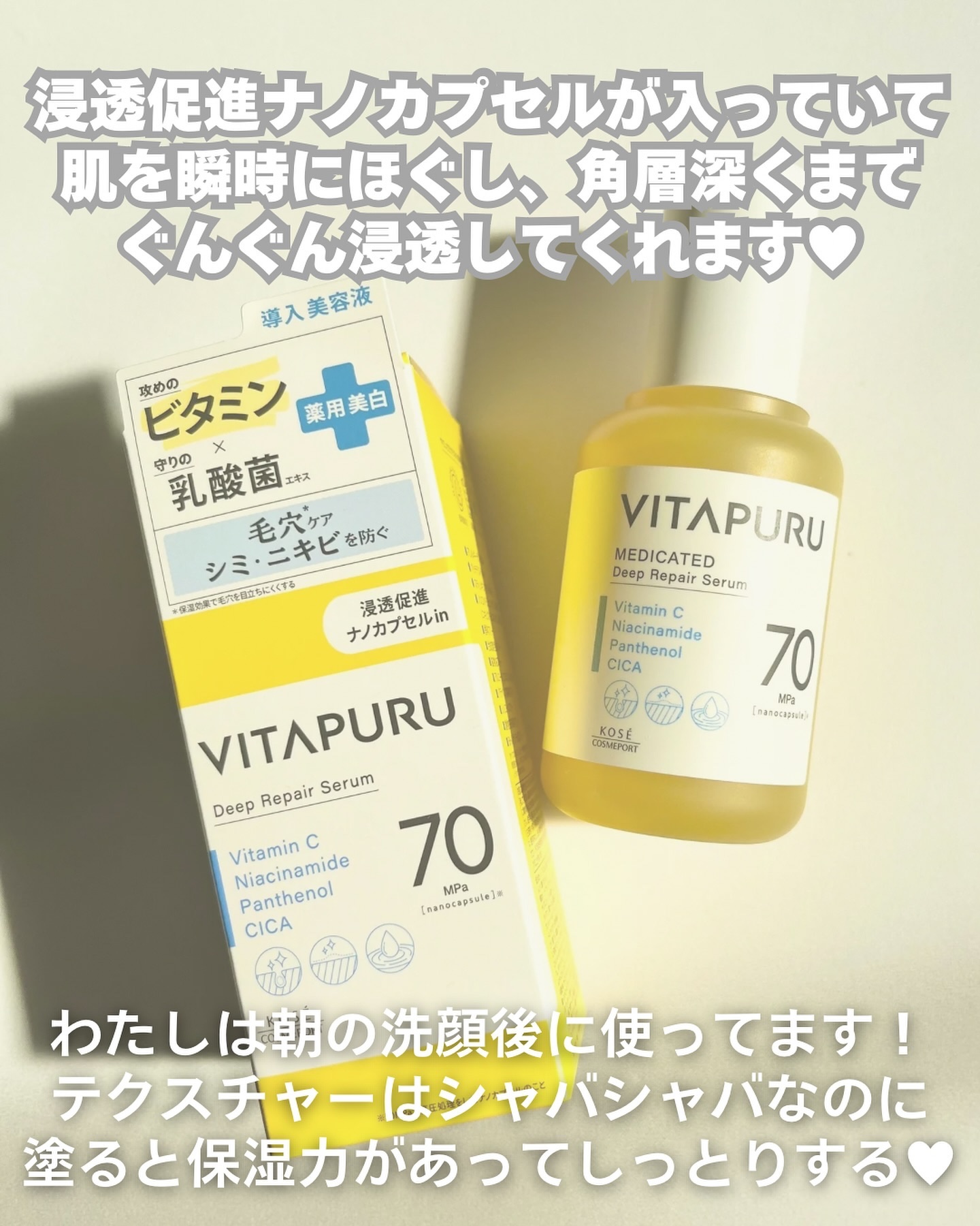 ビタプル ディープリペアセラム【医薬部外品】𓈒𓏸𓐍𓂃𓈒𓏸𓂃◌𓈒𓐍𓈒𓈒𓏸𓐍𓂃𓈒𓏸𓂃◌𓈒𓐍𓈒塗るビタミン×乳酸菌ケアあらゆる肌トラブルの原因*¹にアプローチしてくれるみたい70MPaで高圧処理をしたナノカプセル配合。角層深くまでぐんぐん浸透する高...