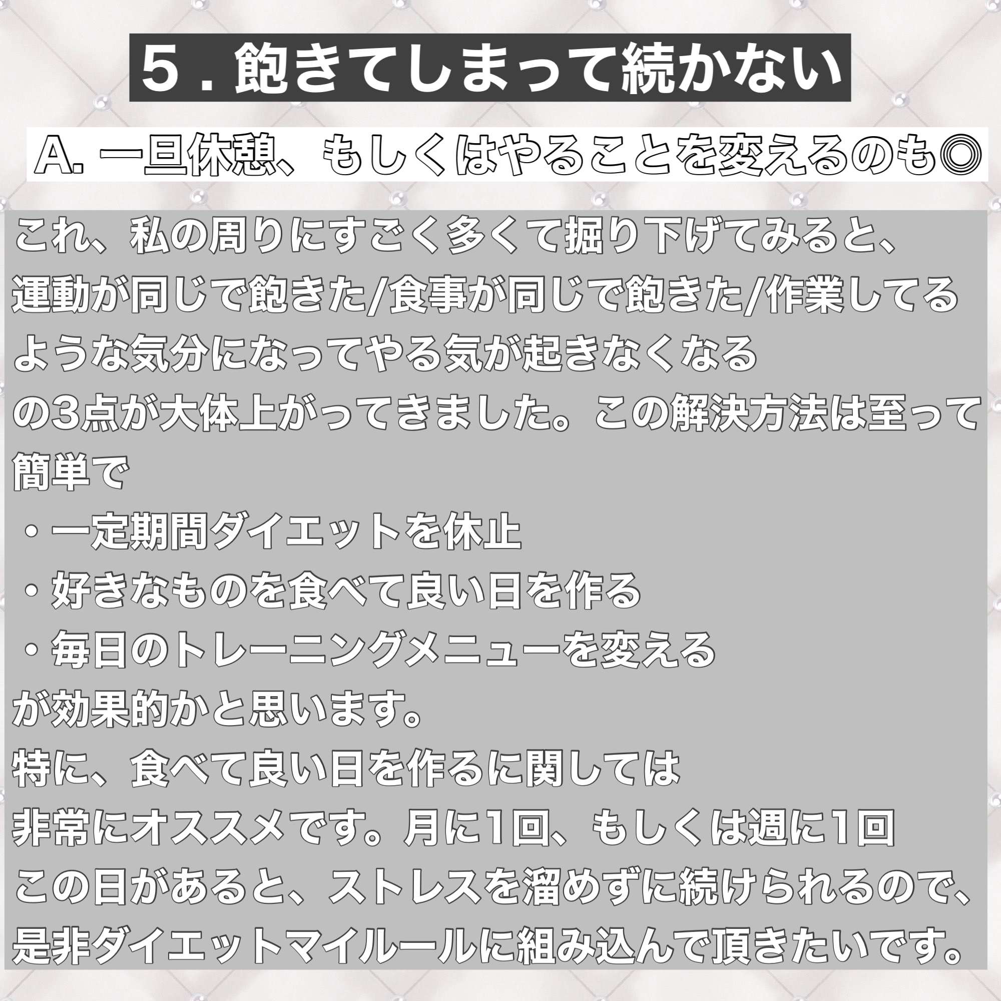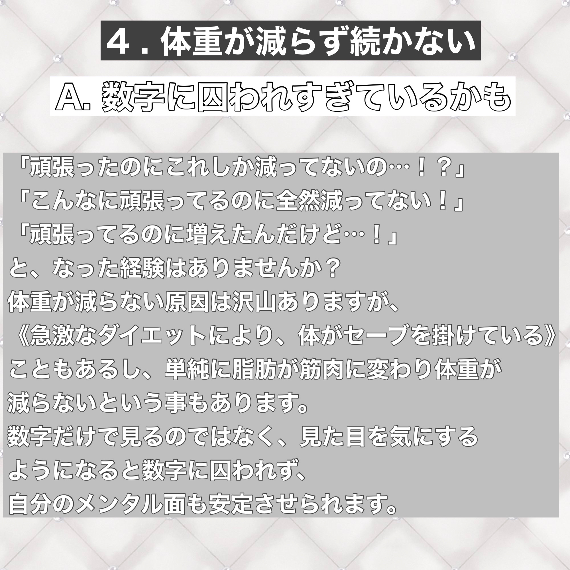 ダイエットは一朝一夕では痩せません。痩せられたとしてもリバウンドの可能性が非常に高くなります。 「体重も気になってしまう」という方は、絶対に体重減ってるなという時だけ計るようにすると 「こんなに頑張ったのに全然減ってない」という焦りやモチベーションのダウンを防げます 👏🏻