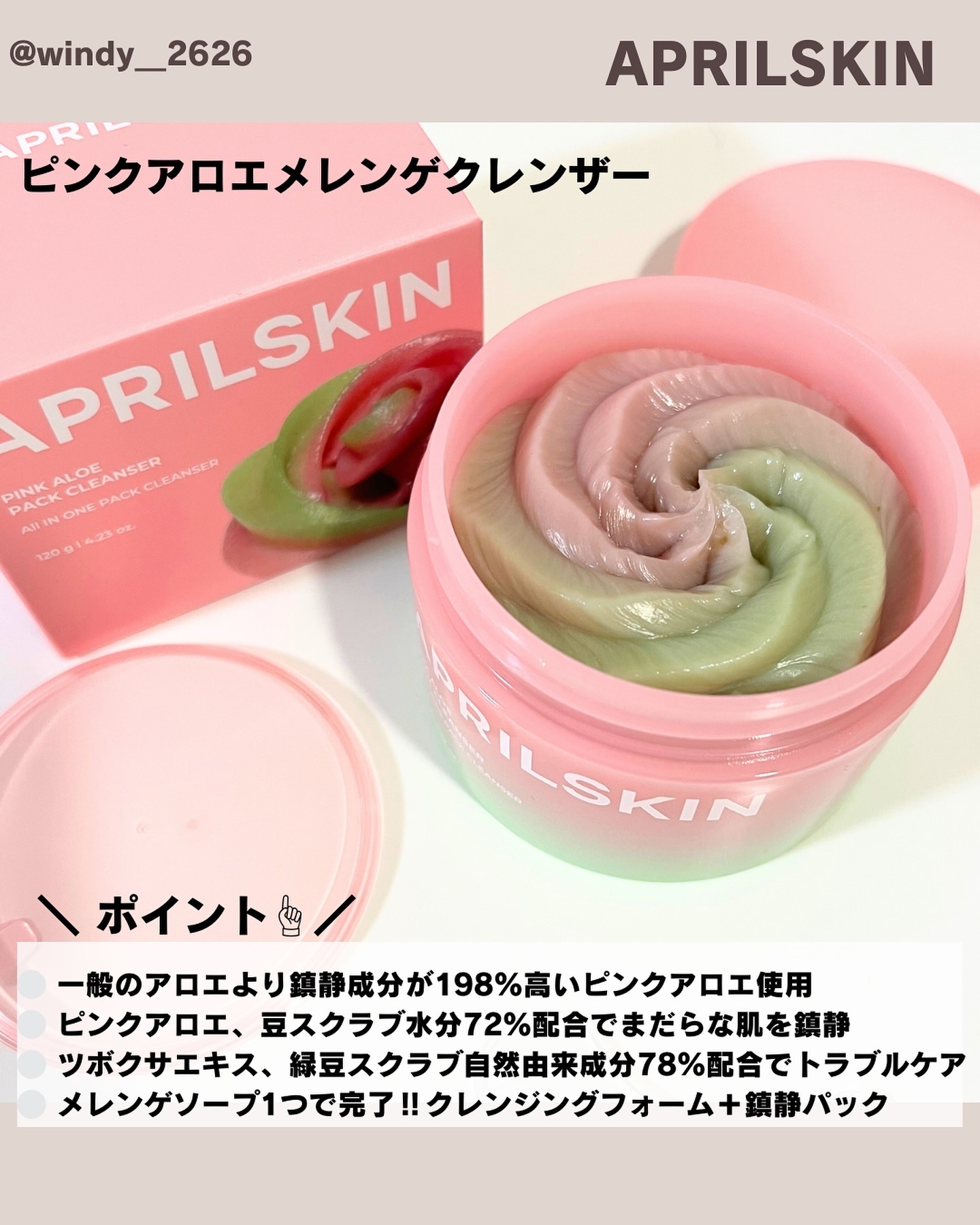 ピンクアロエメレンゲクレンザーはグリーンとピンクの可愛いクレンザーです💁♀️ ピンクアロエを丸ごと込めたよりしっとりしたメレンゲソープ♡ これ一つでクレンジングから鎮静ケア🙆♀️ 微細粉末スクラブ配合で刺激は少なく角質ケア✨ 国内産豆スクラブ、国内産緑豆スクラブ