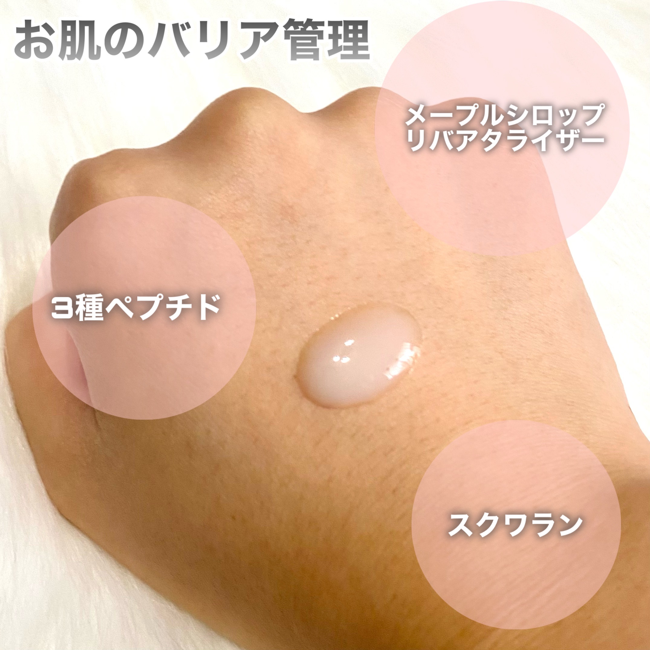 外部からの刺激に負けないコアバリア メープルシロップリバイタライザー ×スクワラン×3種ペプチド=本当のバリア管理✨ ぴよーんと伸びる系、トロットロなセラム。 もっちり仕上がりが気持ちいい!肌の上でヌルつくことなく、ツヤツヤしっとりとします。 クリームバターのような滑らかなテクスチャーでコクのあるクリーム。重たさを感じない軽やかな仕上がりがお気に入り!