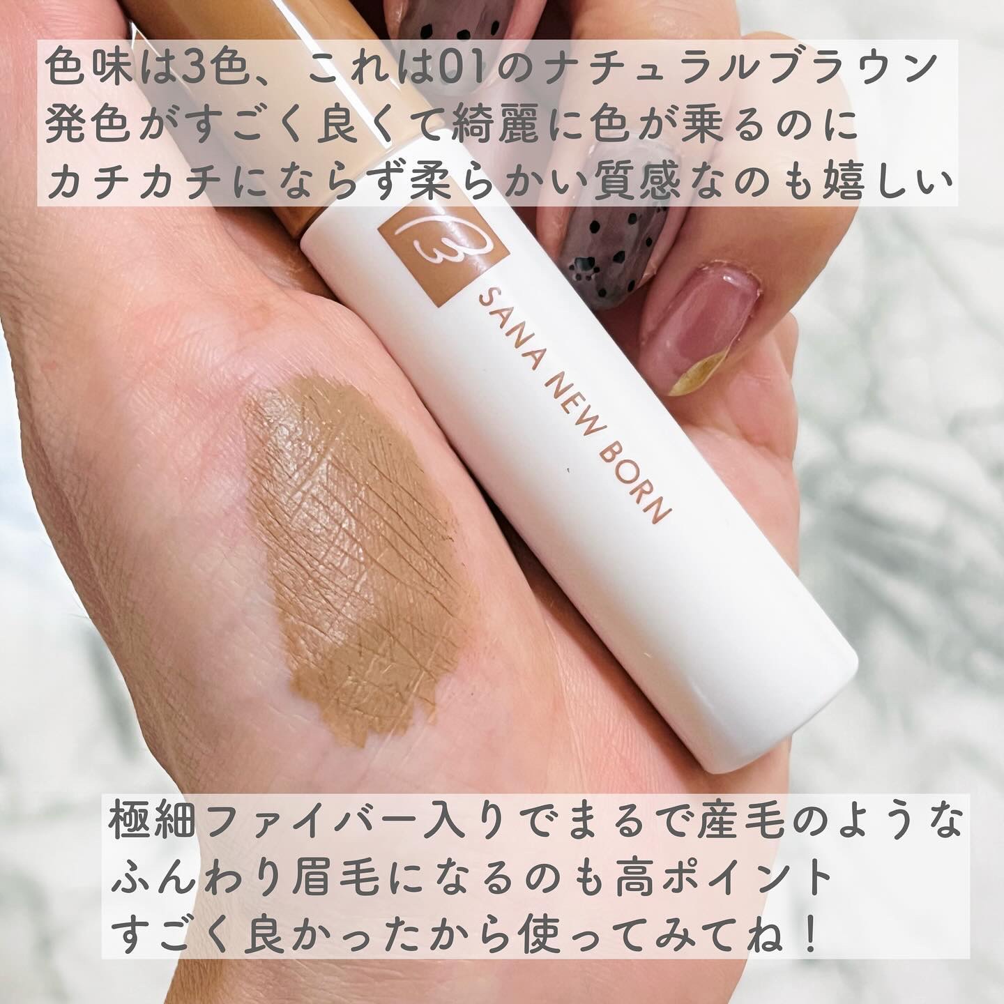 ★SANANEWBORNカラーリングブロウマスカラ★パリッとしない産毛眉毛に!独自設計の3Dブラシで地肌に付きにくく、根本からしっかりふんわり眉毛!【良かった点】・コスパ◎・塗りやすい!・地肌に付着しにくい!・パリッとしないからふんわり眉毛演...