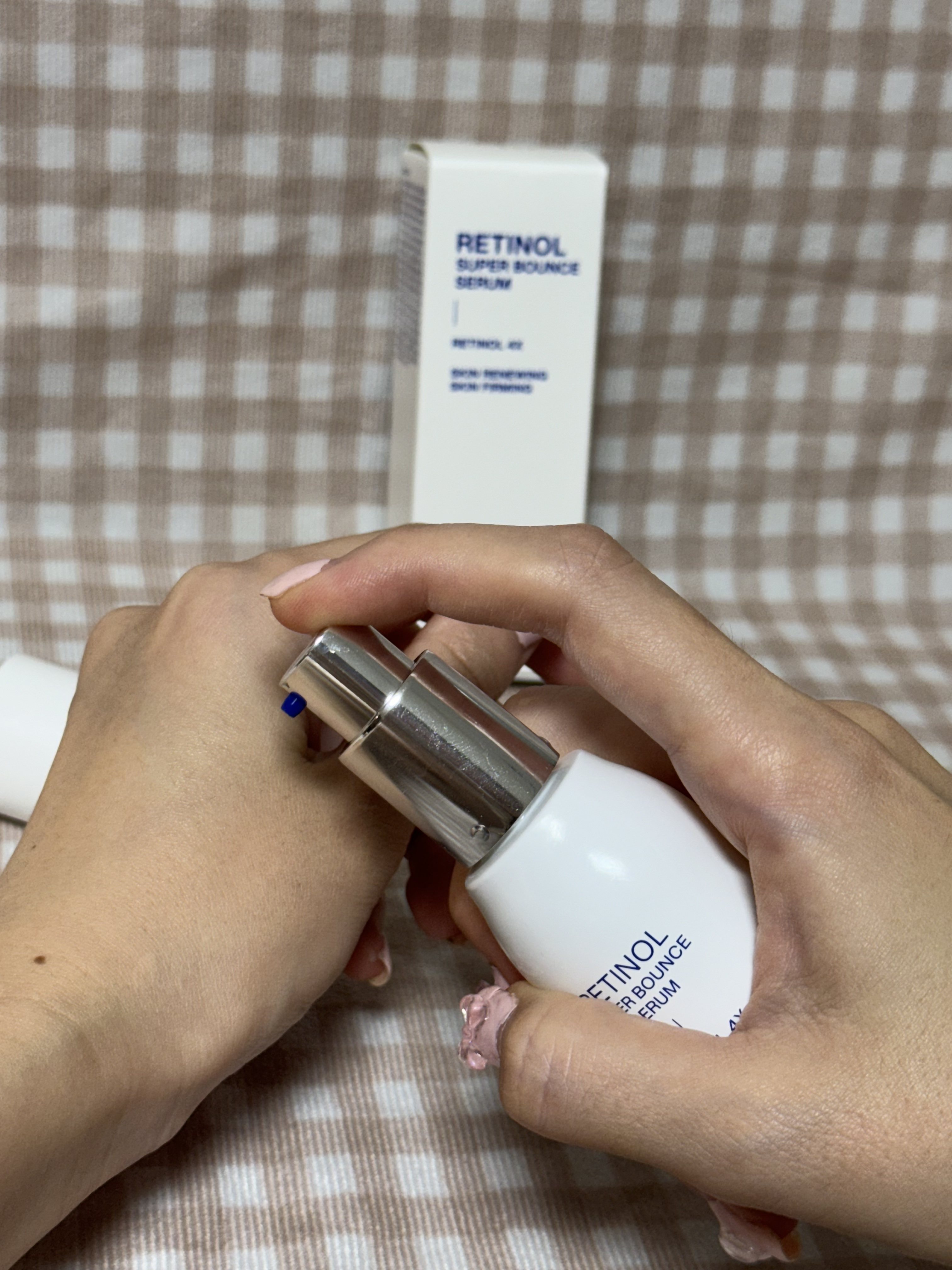 1番初めの使用方法は①カチッと音がするまで最後までポンプを押すと中に入っているカプセルの入口が開きます②カプセルとセラムがよく混ざるように30秒以上強く振ってください。まっすぐに立てた状態で5分程度待ちます③気になる部位に塗って、お肌に吸収させてください テクスチャーは少し黄色っぽい乳液のような美容液で香りはあり、ふんわりフローラルのようなお花の良い香りがしました🌼 少しお高いですが、ビタミンもレチノールも配合の美容液なので、満足なお買い物です💛