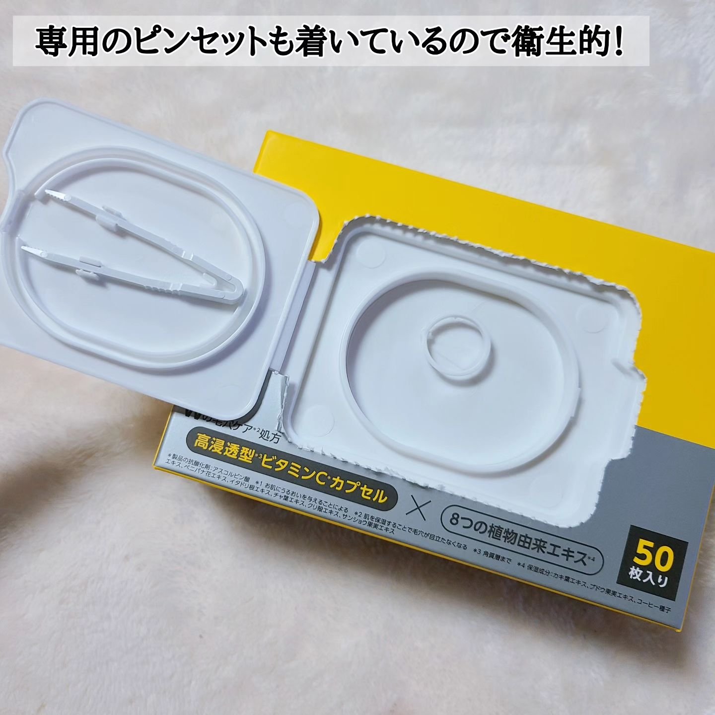 こちらは朝のメイク前に使う部分用シートマスクです✨ 一枚のシートを取り出すと、切り込み線が入っていて半分に切れるようになっています。 ビタミンCの他に角質ケア成分としてAHA/BHA/PHAなどが配合されていて、メイク乗りの良いお肌に導きます! シートがしっかり厚手で良かったですよ☺️