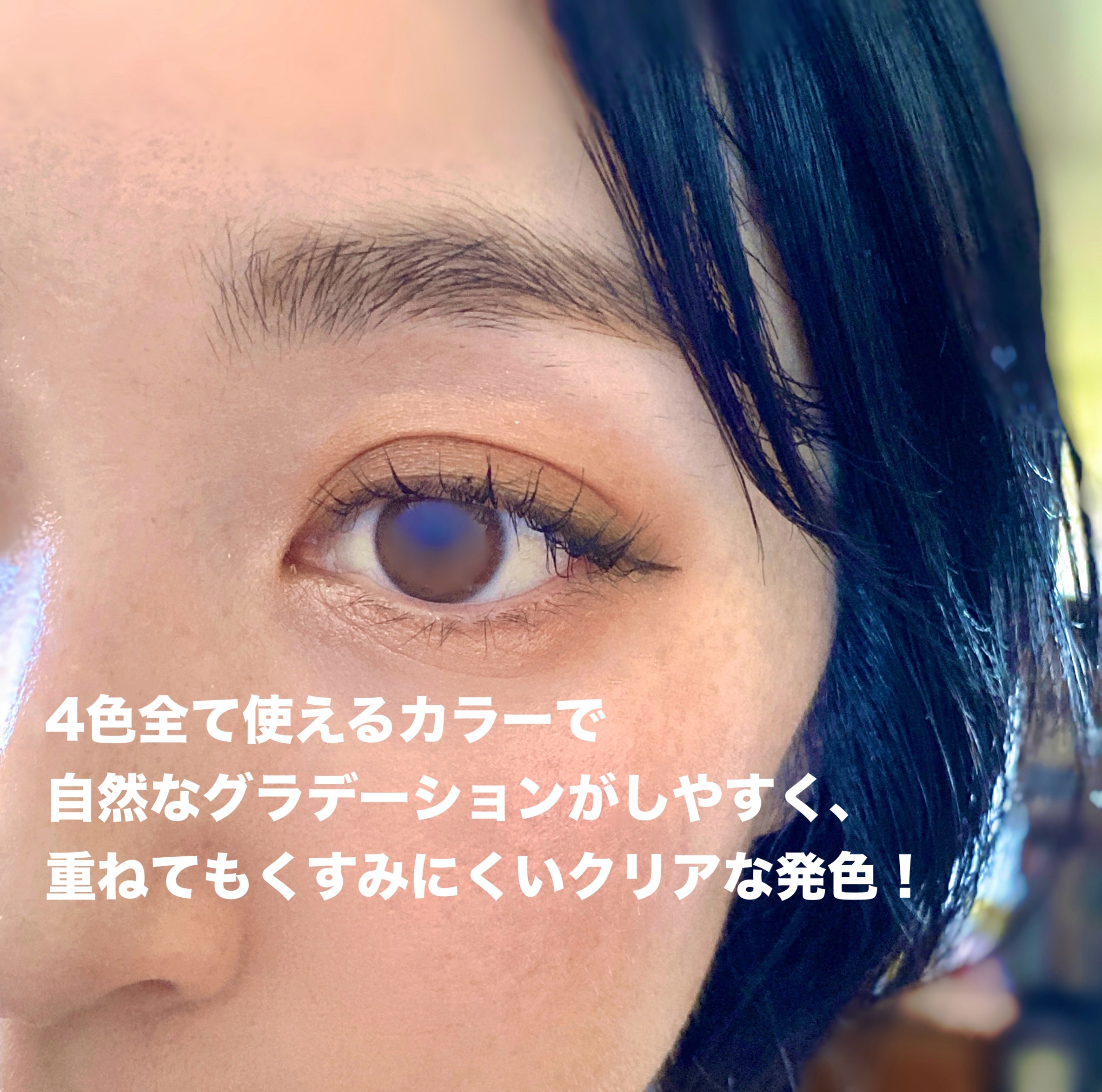 - まぶたに溶け込むような繊細グラデで奥行きのある目元へ ●しっとりなめらかなテクスチャー モイストプレス製法 パウダーなのにやわらかくしっとりとした質感を実現。まぶたに上品なツヤをもたらします。 ●目元を立体的に引き立てる シェードカラー設計 質感の異なるクリアラメ、トーンカラー、ディープカラーで構成されたこだわりの4色を配置。 重ねてもくすみにくい発色でまぶたに陰影をもたらし、目元を立体的に演出します。 ●まぶたに密着して美しい仕上がりが続く 高密着フィット処方 時間がたってもヨレや粉落ちしにくく、美しい仕上がりが続きます。 ●うるおい美容液成分配合 ヒアルロン酸・コラーゲン・ローヤルゼリーエキス・カミツレエキス