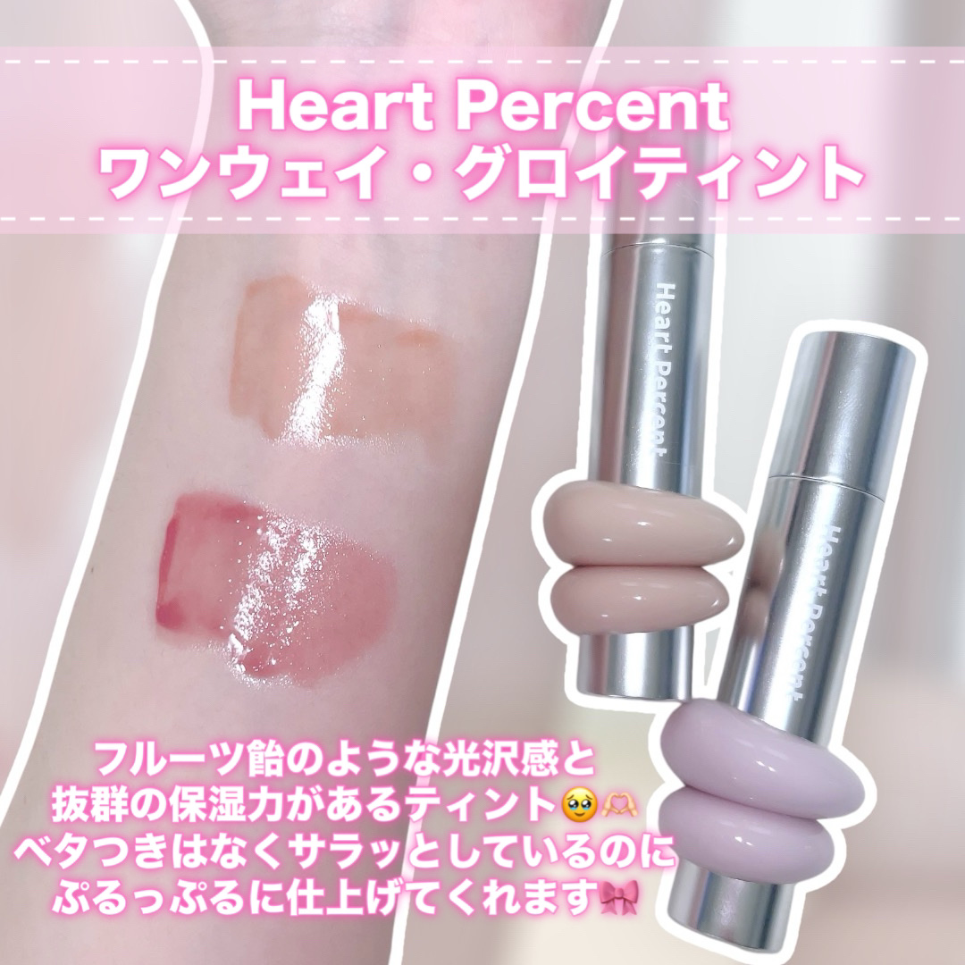 🎀\ちゅるんっと、フルーツ飴リップ/▫️HeartPercent ドットオンムードワンウェイグロイティントSNSで見かけておしゃれなビジュに惹かれたHeartPercent🩷透け感のあるティントリップで柔らかなチップで塗布するタイプブ...