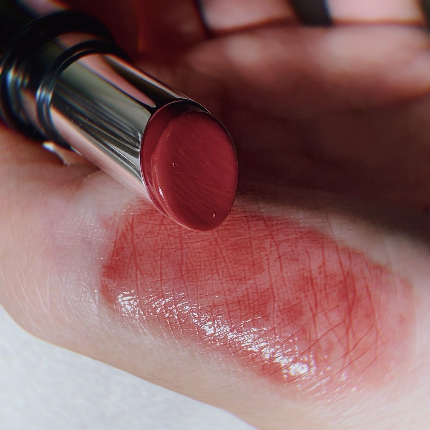 神がかれ、唇。 唇から、転生(*)するジェルコート膜形成、粘膜※1生成リップ リップガーディアンといえばリキッドルージュのイメージでしたが今回はスティックタイプ。黒基調のシックな見た目です。 どちらも粘膜っぽいくすみ感のあるナチュラルなカラー 腕に出した時よりも唇に塗った方が黄みが少なめ?青みっぽい?ような感じの仕上がりになるなと感じました。