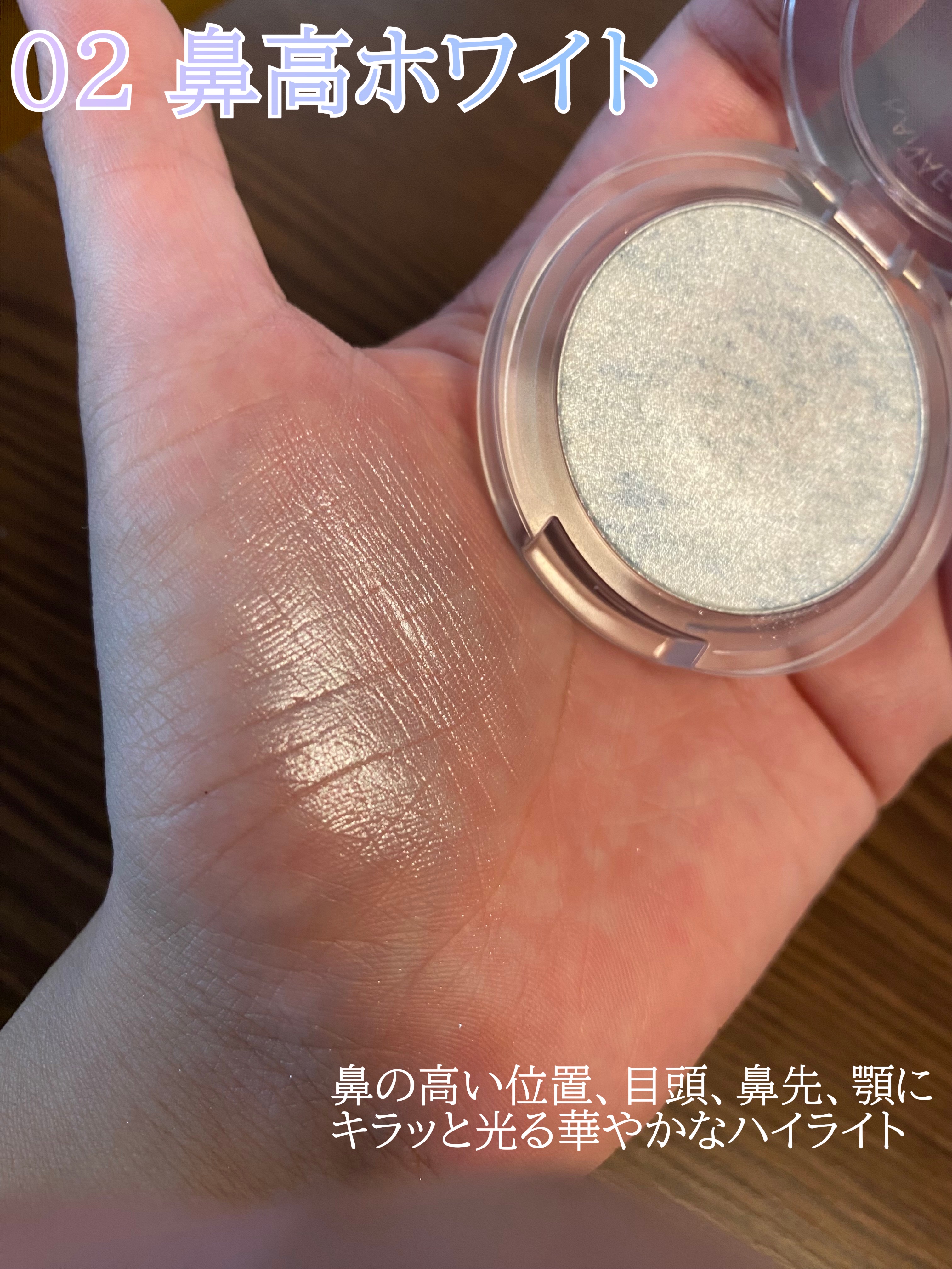 - b idolから新定番! 私にかける、魔法の光。 叶えるハイライト \立体感*血色*透明感/ 欲しいところにプラスする、シルキータッチなハイライト 骨格ベージュで顔全体をフラットになじませて、 鼻高ホワイトで鼻筋や額、高く見せたい所にポイント使い♪ ぷりぷりピンクはチーク使いでかわいく仕込む♡ お肌のことを考えた美容成分*配合なので使いやすい◎ マルチに使える3色展開!コンパクトなのでもち運びにもとっても便利。 *ティーツリー葉油、ヒアルロン酸Na、セラミドNP(全て保湿成分) <01 骨格ベージュ> 自然に溶け込む立体ベージュ <02 鼻高ホワイト> 透明感をひきあげるポイントマーブル <03 ぷりぷりピンク> やわらかな丸みを仕込む血色ピンク ※全てメイクアップ効果