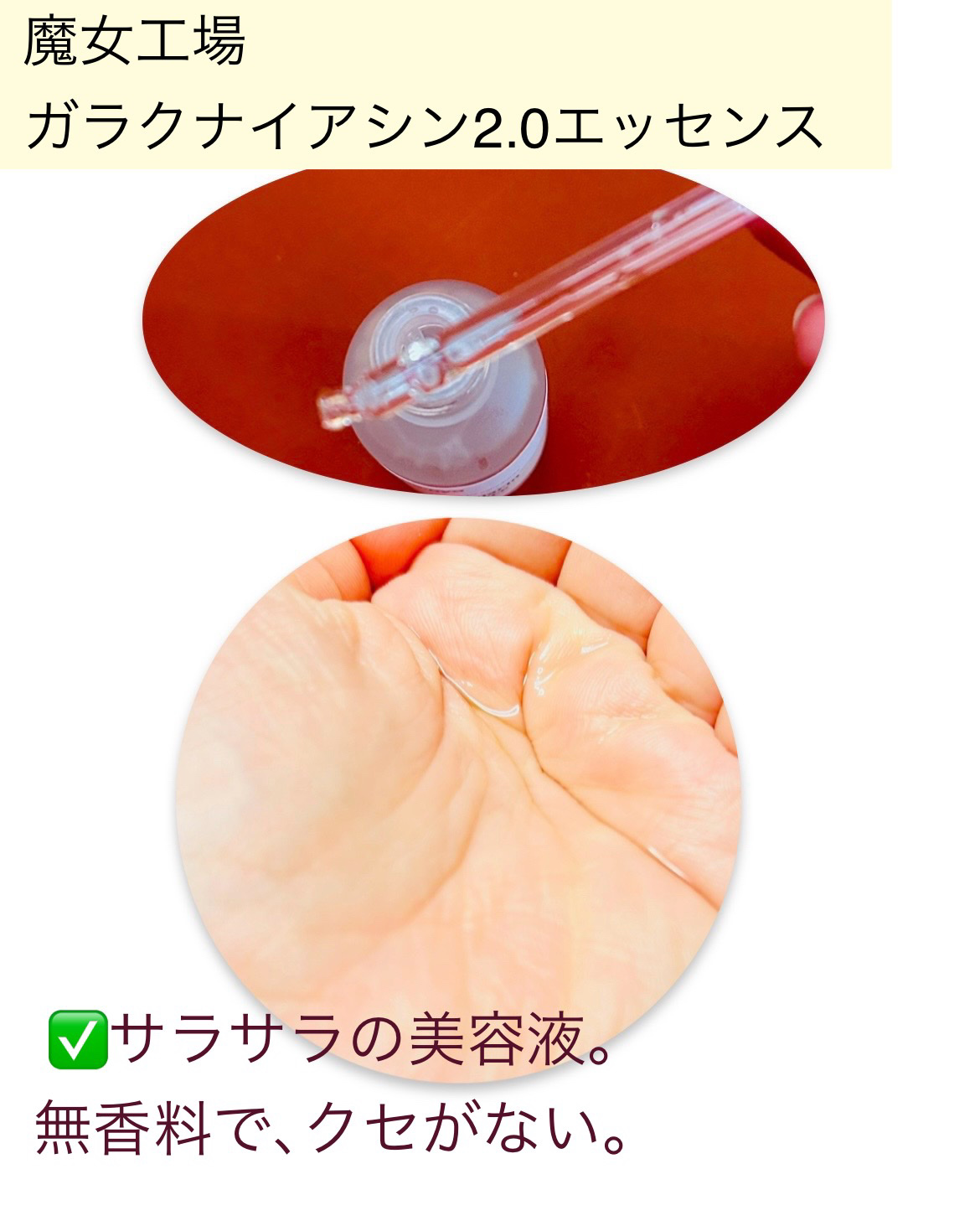 魔女工場ベストセラー美容液🎊 SNSでも良く見かけていたので気になっていました~🌟 高濃縮ガラクトミセスを93.69% 保湿成分ナイアシンアミドを4%配合。 水のようにサラッとしたテクスチャーでさっぱりとした使い心地。