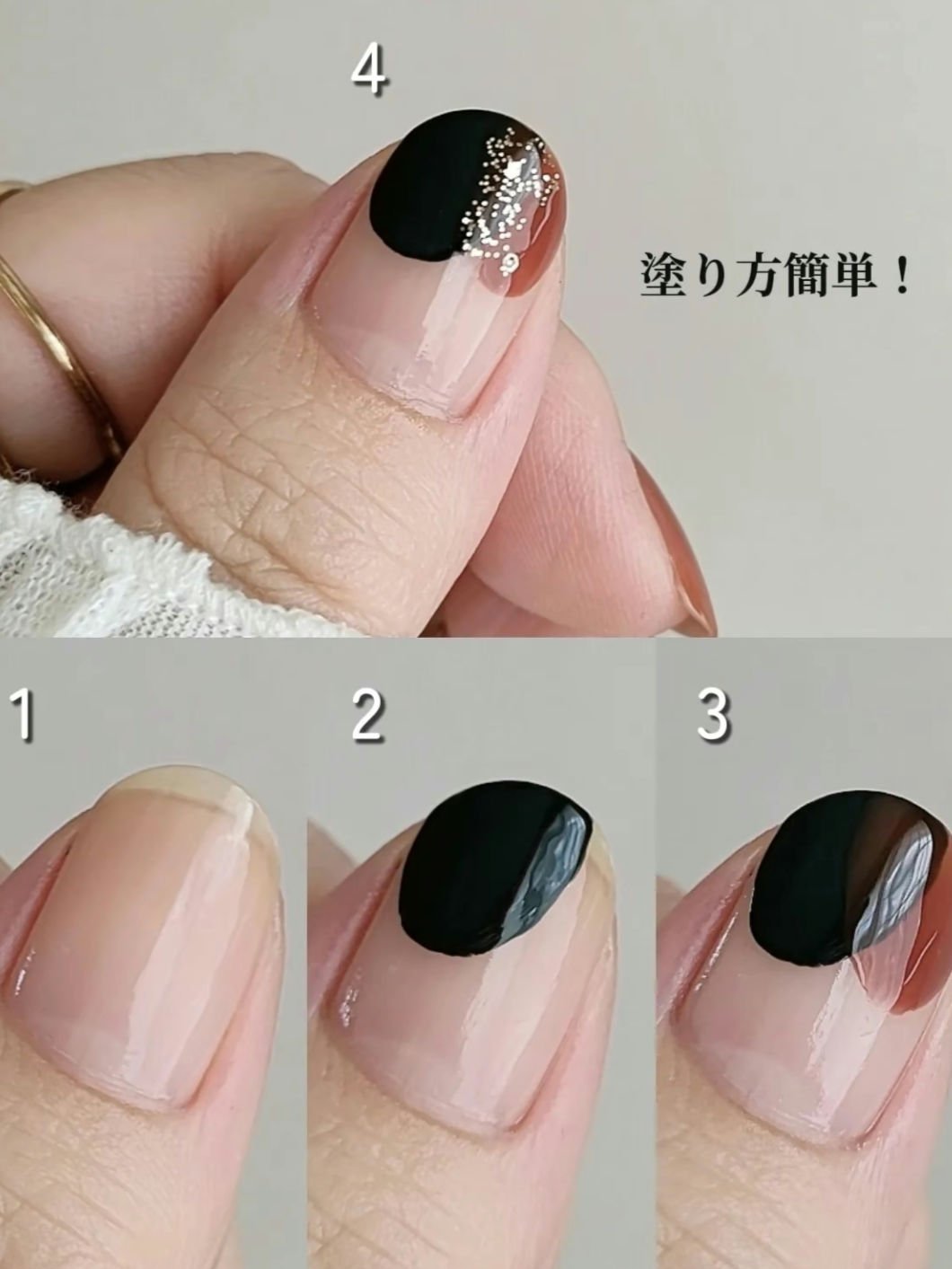 塗りはじめる場所を爪の先端にすることで 自然とマニキュアの量が調節されて 根本に向かうほど薄くなります😊 マニキュアを取る量は範囲が大きければ多め、 小さければ少なめにして、 液の量を調整するのもポイント🖊 不器用な私にもできる! 簡単かわいい大人っぽネイル ぜひフォローしてね🙆♀