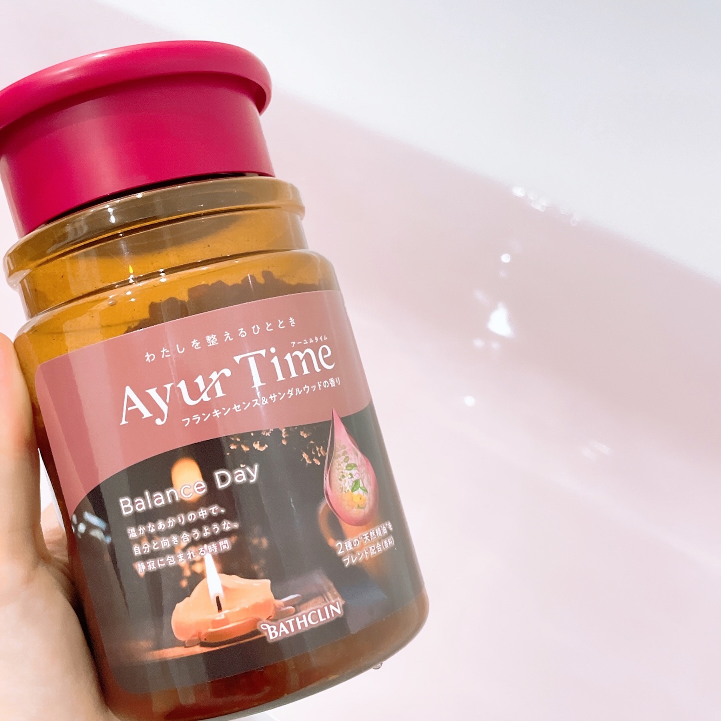 今夜の入浴剤はわたしを整えるひととき Ayu Time(アーユルタイム) 真っ赤なお風呂が情熱的でしょ❤️🔥 溶けるのが早くて香りもよろしいのよ。 植物系保護成分配合ヒマラヤンラズベリーエキス オーガニックセサミオイル