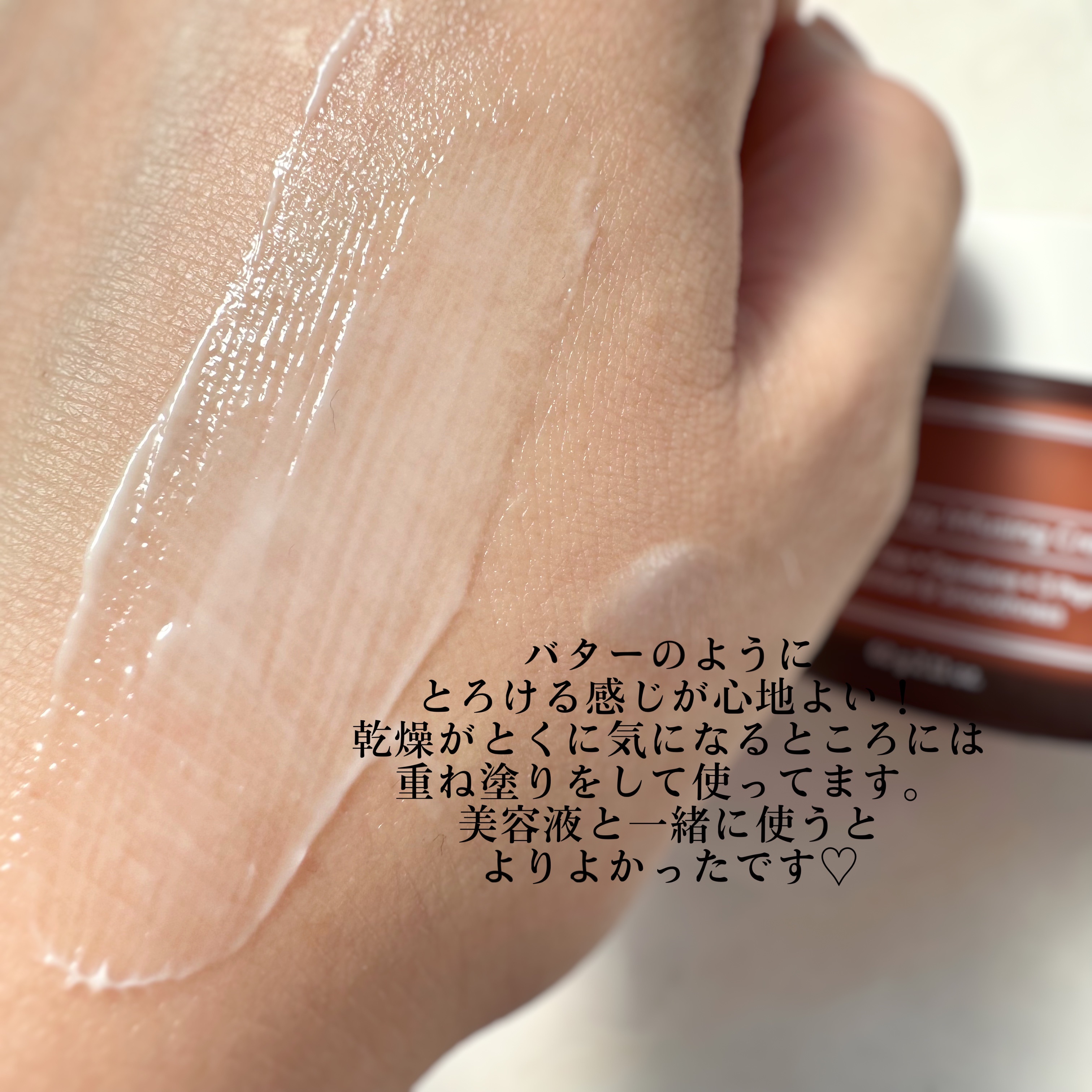 | バターのように柔らかくなめらかなテクスチャー。するする~っとなめらかに伸ばしやすく肌なじみが良いです🥰 | 詳細を見る |