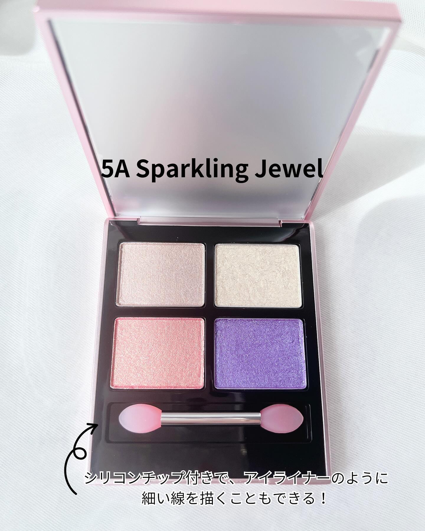 - 2A ファーストドリーム 1.パールピンク (左上) ジメチコン,マイカ,ミネラルオイル,ホウケイ酸(Ca/Al),酸化チタン,タルク,シリカ,トリ(カプリル酸/カプリン酸) グリセリル,ポリイソブテン,合成フルオロフロゴパイト,ジメチコンクロスポリマー,ステアリン酸Mg,ラウリン酸ヘキシル,窒化ホウ素,(ビニルジメチコン/メチコンシルセスキオキサン) クロスポリマー,オキシ塩化ビスマス,マイクロクリスタリンワックス,トリエトキシカプリリルシラン,酸化スズ,メチルパラベン,プロピルパラベン 2.ピーチソルベ (右上) ジメチコン,合成フルオロフロゴパイト,ミネラルオイル,マイカ, 酸化チタン,ホウケイ酸(Ca/Al),タルク,シリカ,トリ(カプリル酸/カプリン酸)グリセリル,ポリイソブテン,ジメチコンクロスポリマー,ステアリン酸Mg,ラウリン酸ヘキシル,窒化ホウ素,(ビニルジメチコン/メチコンシルセスキオキサン)クロスポリマー,酸化鉄,オキシ塩化ビスマス,マイクロクリスタリンワックス,トリエトキシカプリリルシラン,赤102,酸化スズ,赤 201,メチルパラベン,プロピルパラベン,黄4 3.バーガンディレッド (左下) ジメチコン,マイカ,ミネラルオイル,酸化鉄,タルク,シリカ,トリ(カプリル酸/カプリン酸)グリセリル,酸化チタン,ポリイソブテン,ジメチコンクロスポリマー,ステアリン酸Mg,合成フルオロフロゴパイト,ラウリン酸ヘキシル,窒化ホウ素,(ビニルジメチコン/メチコンシルセスキオキサン) クロスポリマ―,ホウケイ酸(Ca/Al),オキシ塩化ビスマス,マイクロクリスタリンワックス,赤104 (1),トリエトキシカプリリルシラン,メチルパラベン,プロピルパラベン,酸化スズ,青 1 4.カシス (右下) ジメチコン,マイカ,酸化鉄,ミネラルオイル,トリ(カプリル酸/カプリン酸) グリセリル,シリカ,タルク,ポリイソブテン,ジメチコンクロスポリマー,酸化チタン,ステアリン酸Mg,ホウケイ酸(Ca/AI),ラウリン酸ヘキシル,窒化ホウ素,ビニルジメチコン/メチコンシルセスキオキサン) クロスポリマー,合成フルオロフロゴパイト,マイクロクリスタリンワックス,オキシ塩化ビスマス,トリエトキシカプリリルシラン,メチルパラベン,プロピルパラベン,酸化スズ,青1 3A タイムレスエンヴィ 1.レモンソルベ(左上) ジメチコン, ホウケイ酸(Ca/Al), ミネラルオイル, タルク, マイカ, シリカ,トリ(カプリル酸/カプリン酸) グリセリル,ポリイソブテン,ジメチコンクロスポリマー, ステアリン酸Mg、 酸化チタン, ラウリン酸ヘキシル,窒化ホウ素,(ビニルジメチコン/メチコンシルセスキオキサン)クロスポリマー, オキシ塩化ビスマス, マイクロクリスタリンワックス, 酸化スズ, トリエトキシカプリリルシラン,メチルパラベン、酸化鉄, プロピルパラベン, 青1 2. ラテミルク (右上) ジメチコン, マイカ,ホウケイ酸(Ca/Al), ミネラルオイル,酸化チタン,タルク, 合成フルオロフロゴパイト, シリカ,トリ (カプリル酸/カプリン酸)グリセリル, ポリイソブテン,ジメチコンクロスポリマー, ステアリン酸Mg, ラウリン酸ヘキシル,窒化ホウ素,(ビニルジメチコン/メチコンシルセスキオキサン)クロスポリマー, オキシ塩化ビスマス, 酸化鉄, マイクロクリスタリンワックス, トリエトキシカプリリルシラン,酸化スズ,赤102, 赤201, メチルパラベン,プロピルパラベン,黄4 3.マロン (左下) ジメチコン, マイカ, ミネラルオイル, 合成フルオロフロゴパイト, ホウケイ酸(Ca/Al), タルク,酸化チタン,シリカ, トリ(カプリル酸/カプリン酸) グリセリル,酸 化鉄, ポリイソブテン,ジメチコンクロスポリマー, ステアリン酸Mg,(ビニルジメチコン/メチコンシルセスキオキサン) クロスポリマー, オキシ塩化ビスマス, マイクロクリスタリンワックス, トリエトキシカプリリルシラン,酸化スズ, 赤201, メチルパラベン,赤102 4. ショコラ (右下) ジメチコン, マイカ, ミネラルオイル,酸化鉄, タルク, シリカ,トリ(カプリル酸/カプリン酸) グリセリル,ポリイソブテン,ジメチコンクロスポリマー, ホウケイ酸(Ca/Al), ステアリン酸Mg,酸化チタン,合成フルオロフロゴパイト, ラウリン酸ヘキシル, 窒化ホウ素,(ビニルジメチコン/メチコンシルセスキオキサン)クロスポリマー, オキシ塩化ビスマス,マイクロクリスタリンワックス, トリエトキシカプリリルシラン,メチルパラベン,プロピルパラベン,酸化スズ 5A スパークリングジュエル 1.ベビースキン (左上) ジメチコン,マイカ,ホウケイ酸(Ca/Al),ミネラルオイル,酸化チタン,タルク,シリカ,トリ(カプリル酸/カプリン酸) グリセリル,ポリイソブテン,ジメチコンクロスポリマー,ステアリン酸Mg,合成フルオロフロゴパイト,ラウリン酸ヘキシル,酸化鉄,窒化ホウ素,(ビニルジメチコン/メチコンシルセスキオキサン)クロスポリマー,オキシ塩化ビスマス,マイクロクリスタリンワックス,トリエトキシカプリリルシラン,酸化スズ,メチルパラベン,プロピルパラベン 2.シャンパーニュ ゴールド (右上) ジメチコン,ホウケイ酸(Ca/Al),ミネラルオイル,タルク,マイカ,シリカ,トリ(カプリル酸/カプリン酸) グリセリル,ポリイソブテン,ジメチコンクロスポリマー,ステア