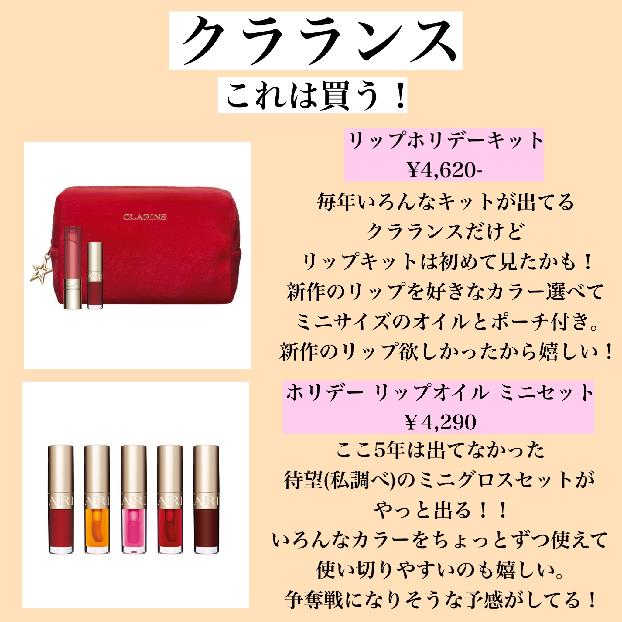 クリスマスコフレ、アドベントカレンダー含め皆何を狙っているか気になりますね!クラランスのアドベントカレンダーと、アナスイのリング型のリップバームが気になっいます!