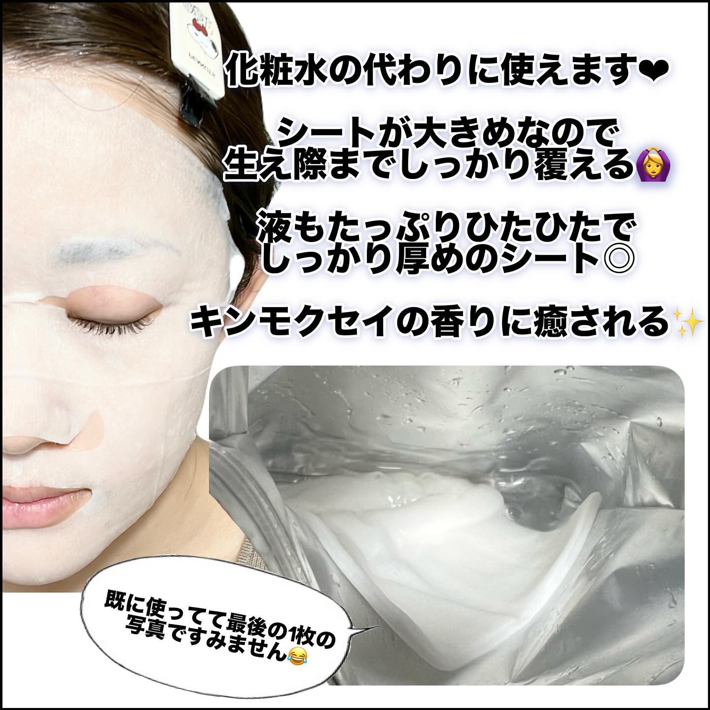 | やわらかい感触のシート♪ たっぷりの化粧水が含まれているのが分かるくらい うるうるしています😊 | 詳細を見る | |