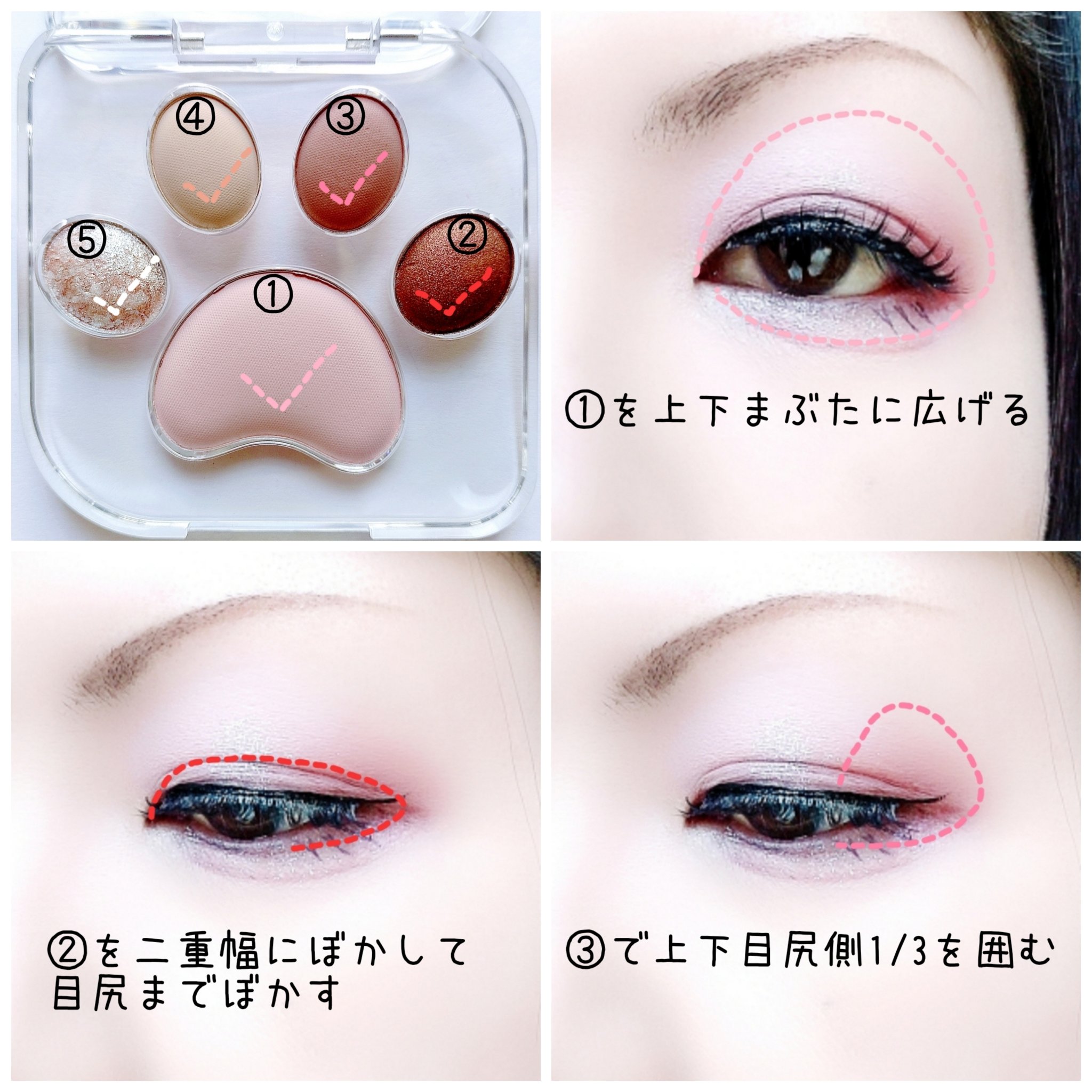ベースカラー、締め色、ラメがそろったかわいい5色パレット💕 見た目の可愛さだけじゃなくて機能性も◎❣️ 発色が想像以上に良くて見たままのカラーでメイクできるのが楽しい♥️ 気まぐれ猫ちゃんのような女の子におすすめ🐱ฅ