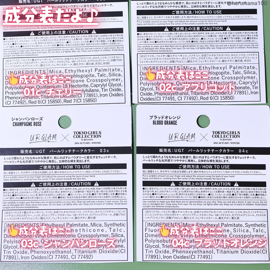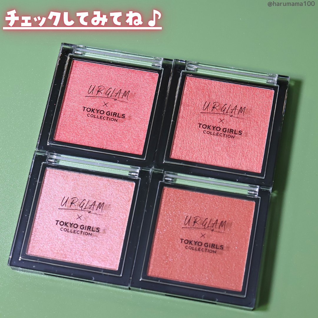- 〈限定発売〉 UR GLAMからTOKYO GIRLS COLLECTIONとのコラボ商品が登場! 多幸感メイクチークしっとり濡れたようななめらかな質感で、肌にのばすとパウダリーに変化するウェットチーク。 パールリッチな光沢感でつややかに発色し、立体的な頬を演出します。