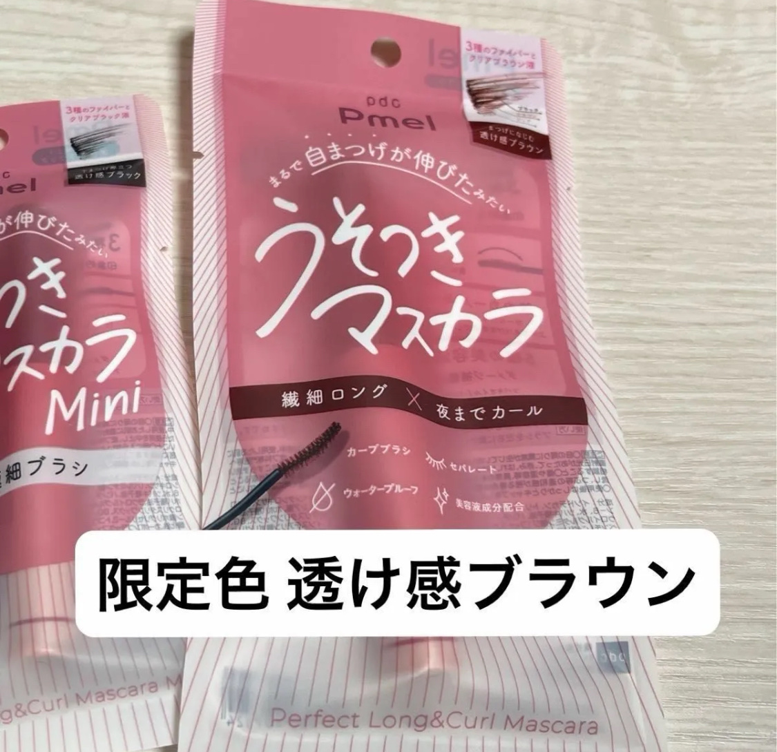 - "さっと仕込んで 私らしさ引き出す ピメルではじける あなただけの魅力"。 繊細ロング×長時間カール、まるで自まつげが伸びたみたい!"うそつきマスカラ"。 さっとひと塗りで、ナチュラルだけど目ヂカラUPを演出するまつげになじむ「透け感ブラック」。 肌馴染みが良くさらに軽やかな「透け感ブラウン」。 大人可愛い限定色「透け感モーヴピンク」。 印象的でおしゃれな限定色「透け感ナイトグリーン」。 重ねてもダマになりにくいセパレート仕上げでしっかりカールキープ。 綺麗なまつげが続く、ウォータープルーフ。