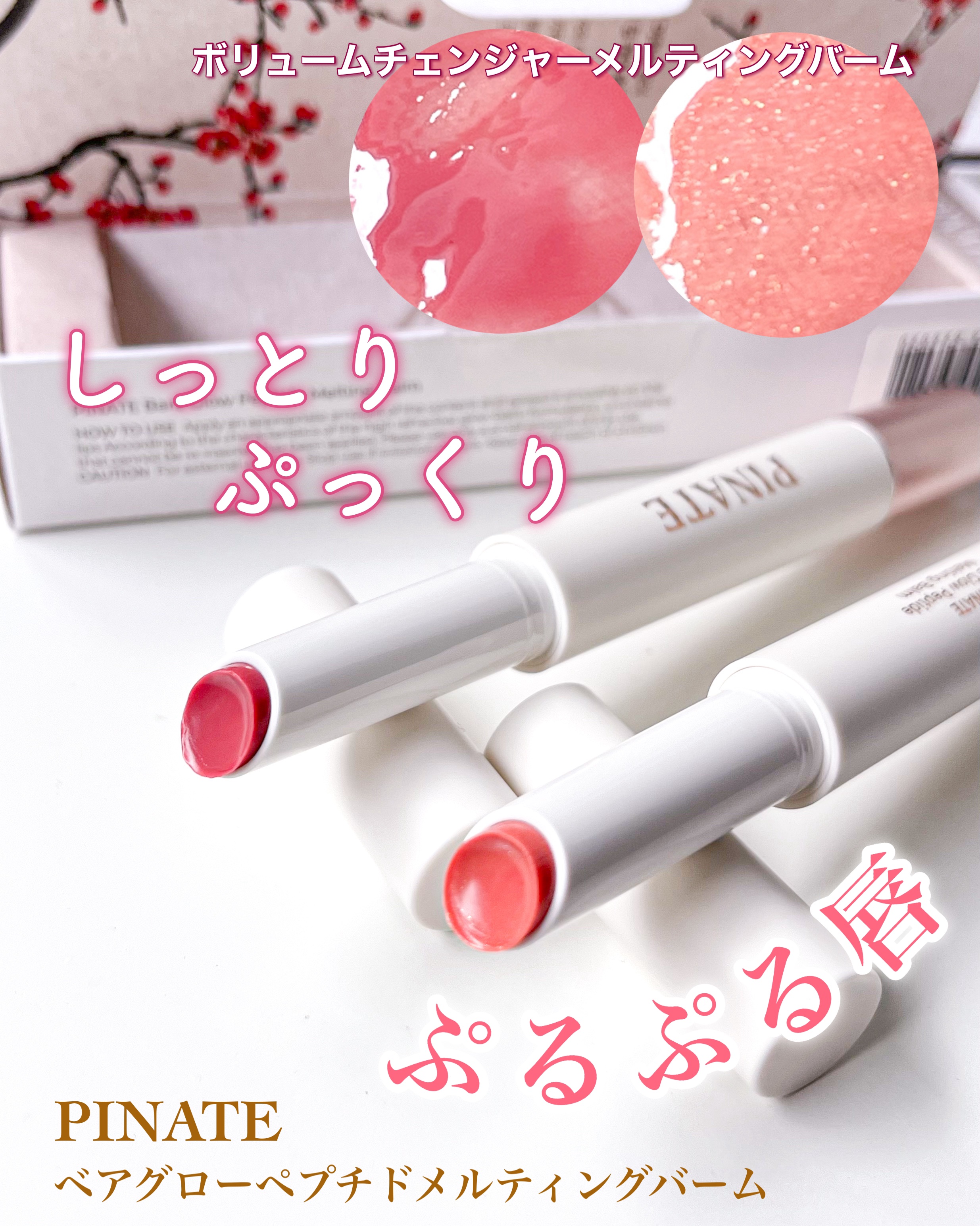 大好きなメルティングバーム この前もQoo10で違う色を購入したばかり。 体温でとろける、柔らかいテクスチャーでするする塗れるのが大好き🫶 もっちりツヤ感🩷 かわいいです!!