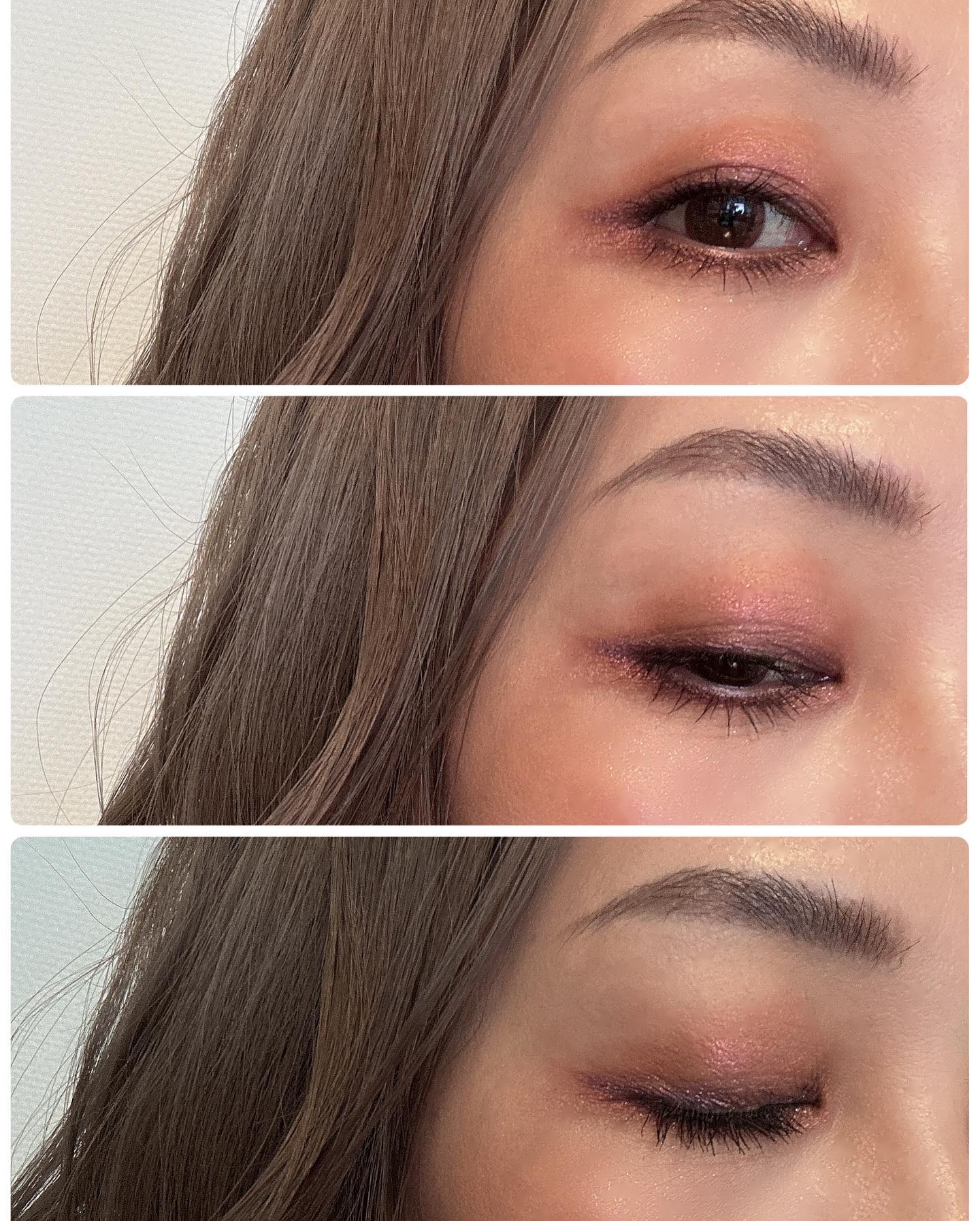 46ネオン ダリア 去年発売された限定です。ラベンダーカラーのラメです。ベースとして使ってます。 38バーガンディ ペルレ こちらも限定です。目のキワに乗せてブラシでぼかして使ってます。 42セレスティアル ピンク こちらも去年発売された限定です。目頭に乗せるとキラキラしますよ!