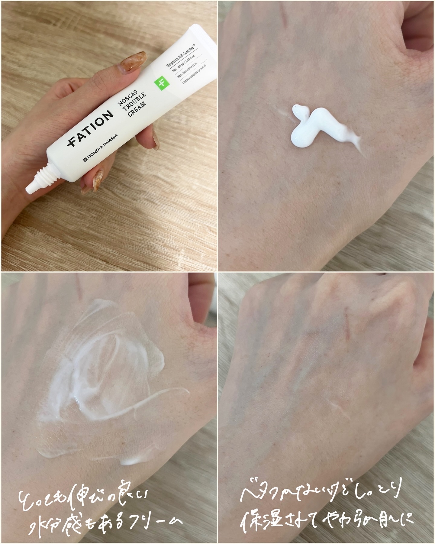 韓国の製薬会社『東亜製薬』で9年間研究開発して作られたノスカナインライン︎︎𓂃🪴 独自開発した有効成分伝達技術【ラピッドサムテクノロジー™】でニキビ、トラブルで敏感になった肌を素早く鎮静させる🍃 ややとろみがあってやさしく肌を包み込んでくれるようなテクスチャーが好き🤲🏻 2度ほど重ね付けするともっちりとした肌に🤍 みずみずしい伸びの良いクリーム🫧 軽くさっぱりしているのにしっかり保湿感がありしっとり肌に🕊 出し口が細いので塗りたいところにピンポイントで塗れるところも良い◎