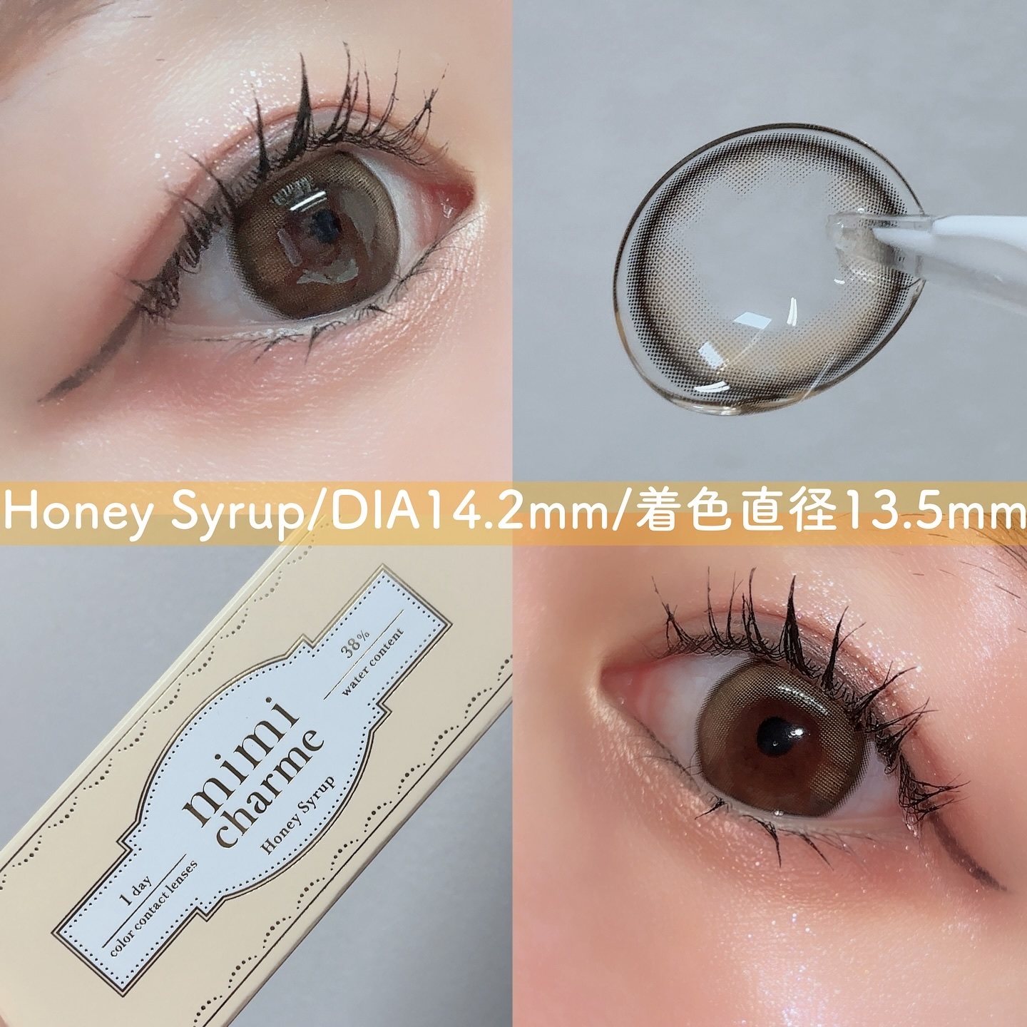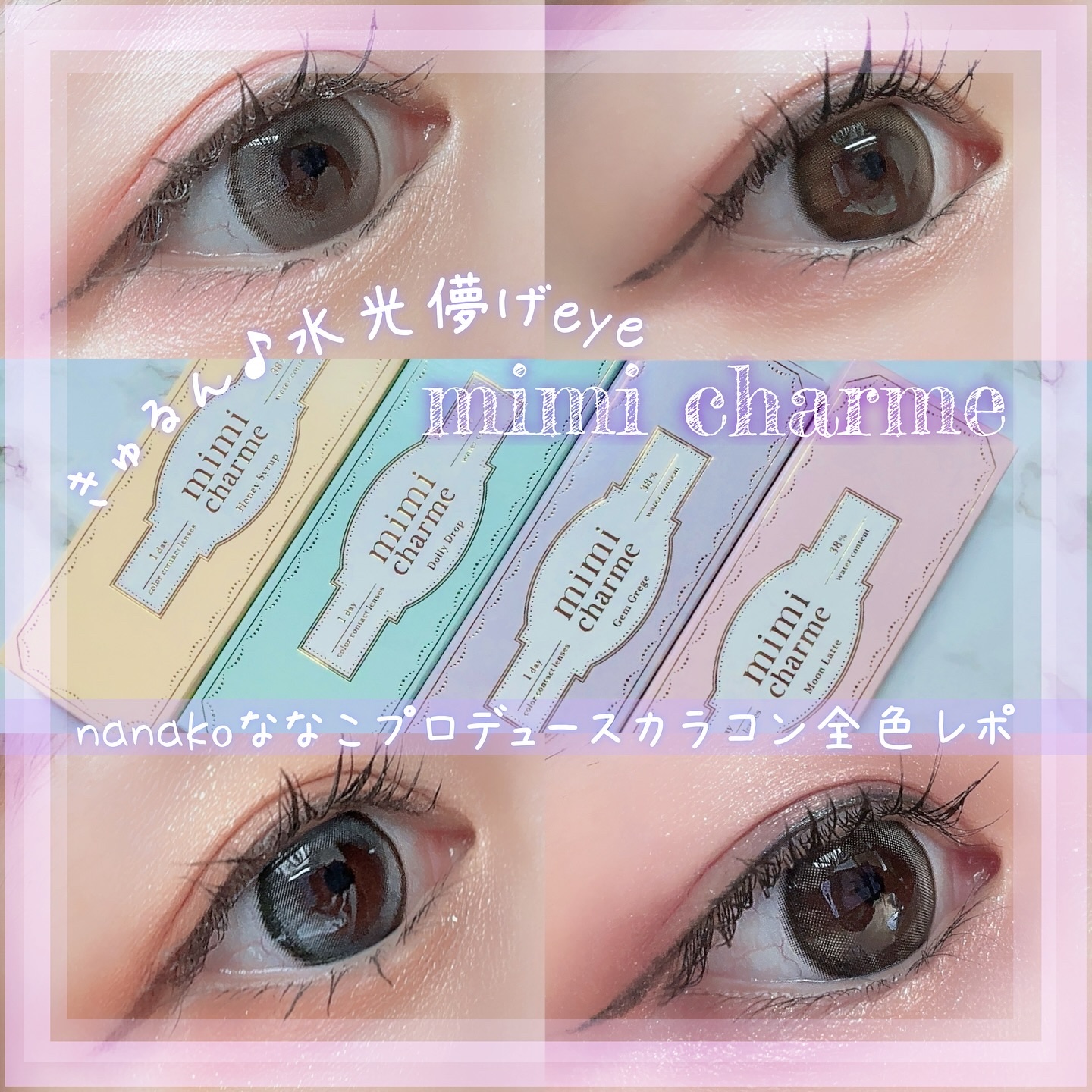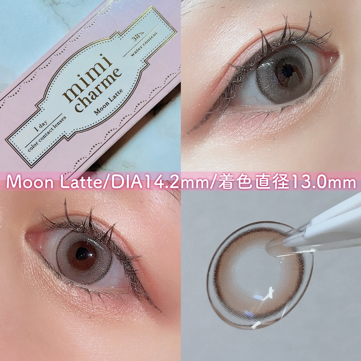 - 誰もが物語の主人公。 舞台の上でスポットライトを浴びているように瞳に魅力と光をまとわせ、毎日のわたしをより一層美しく輝かせる。 mimi charme(ミミシャルム)と一緒に物語の続きを。 <キティパフ> DIA14.2mm/着色直径13.8mm 太フチ無敵盛れ水光グレー あざと子猫ちゃんになれちゃう! 一軍太フチグレーレンズ <ジェムグレージュ> DIA14.2mm/着色直径13.5mm 細フチ大人っぽ水光グレージュ グレーなのにナチュラルでデイリー使いしやすい! <ドーリードロップ> DIA14.2mm/着色直径13.6mm 新感覚♡きゅるん盛れドーリーアイ 散りばめたブルーのハイライトがトレンド感満載! <ハニーシロップ> DIA14.2mm/着色直径13.5mm 細フチあざと水光ブラウン 新王道!垢抜け水光ブラウンレンズ <ムーンラテ> DIA14.2mm/着色直径13.0mm キラめき水光ミルキーベージュ オシャレな放射状ハイライトでまるで発光しているような瞳へ! <ロイヤルムーン> DIA14.2mm/着色直径13.0mm キラめき水光ミルキーグレー あの大人気カラームーンラテの色違い! 儚げうるみグレーレンズ カラーコンタクトレンズの不適正使用による眼障害の危険性等などがあります。 ●コンタクトレンズは高度管理医療機器です。不十分な洗浄・消毒など不適切なケアや、長時間・交換期間を超えた装用により、アレルギー性結膜炎、角膜感染症、角膜潰瘍等の重篤な眼障害が発生する危険性があります ●ご使用前に取扱説明書を確認してください 使用上の留意事項 ●眼科医院等を受診してからお求めください ●眼に異常を感じたら直ちにレンズ使用を中止し、お近くの眼科等で診察を受けてください ●医師の指示にしたがってご使用ください ●コンタクトレンズを装用する場合、自覚症状がなくても、眼科医院等での定期検査を受けてください ●レンズに不具合がある場合は使用しないでください