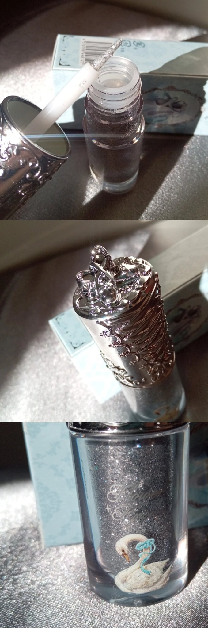 バレエシューズのようなかわいいパッケージのグリッター🩰 白鳥の湖の要素を取り入れたスワンバレエシリーズで、優雅な印象のコスメになっています🦢 軽い付け心地でヨレにくく長時間きらめきをキープしてくれます✨