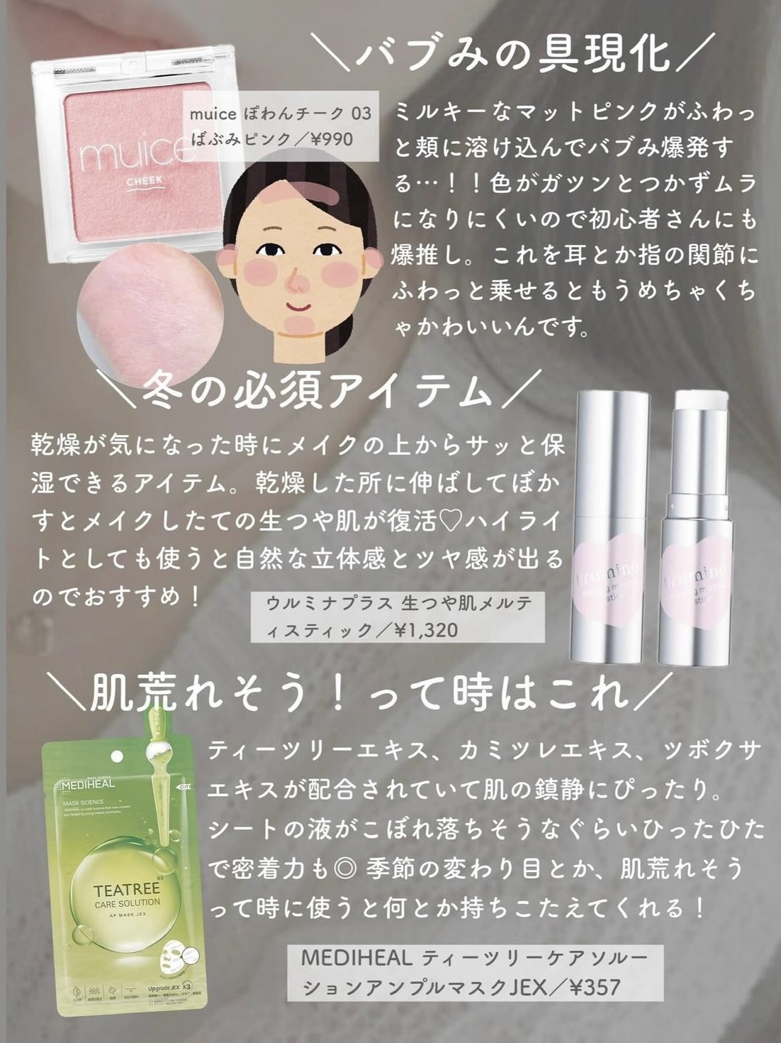 みおんちゃん久しぶり!! 今めっちゃだからオールプチプラすごい助かる…!! メディヒール箱買いするくらい愛用中💓💓 マジョマジョの香水めっちゃ気になる!!この値段でかわいい女子になれちゃうとかもう凄すぎる🥲 今日も参考になる投稿ありがとう🙏💞