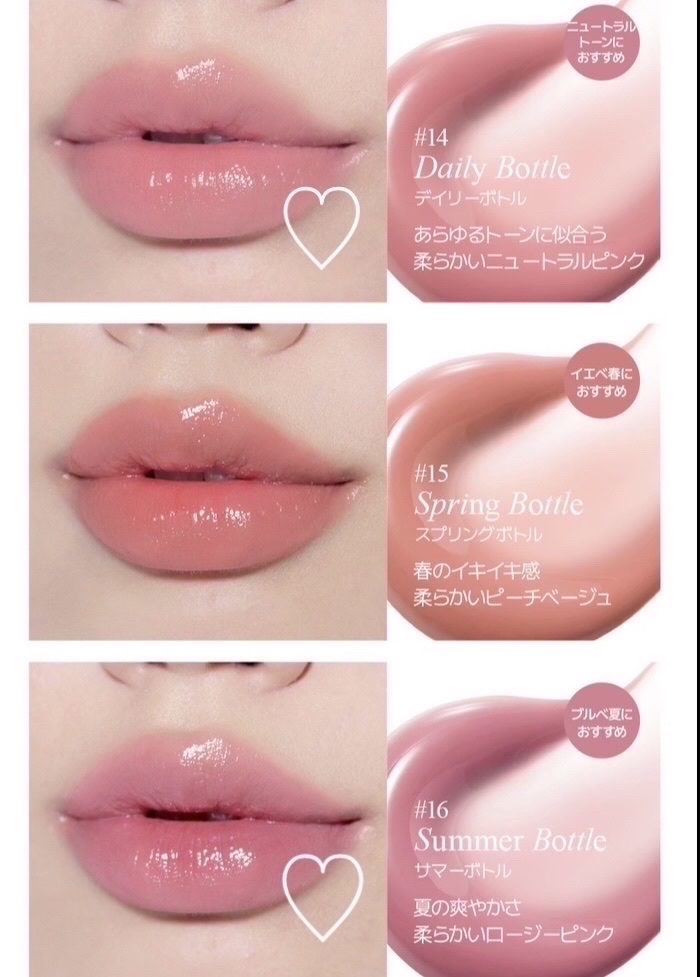 - 水たっぷりのボトルのようなしっとり爽やかなウォーターリップ。 ゆらゆらと揺れる水光のように生き生きとした光感で、重苦しい感じZERO!想像以上の快適なグローリップティント。みんなが望んでいたまさにその着色!目に見える色そのまま鮮やかなカラー感で、乾燥を防ぎ快適でモチッと密着するグローテクスチャ。